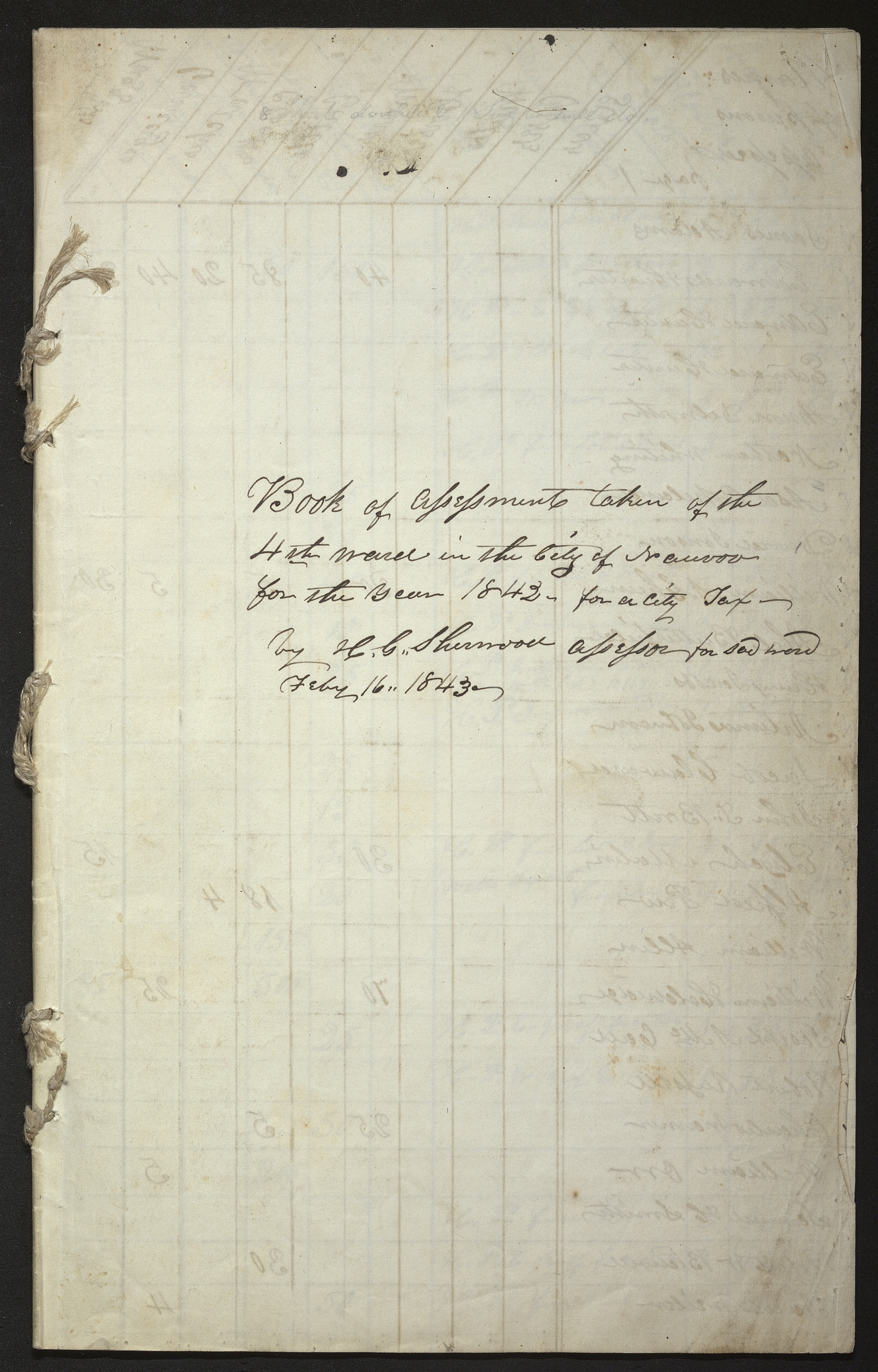 Book of Assessments taken of the 4th ward in the City of Nauvoo for the year 1842- for a City Tax— by assessor for sa[i]d ward Feby. 16, 1843—
