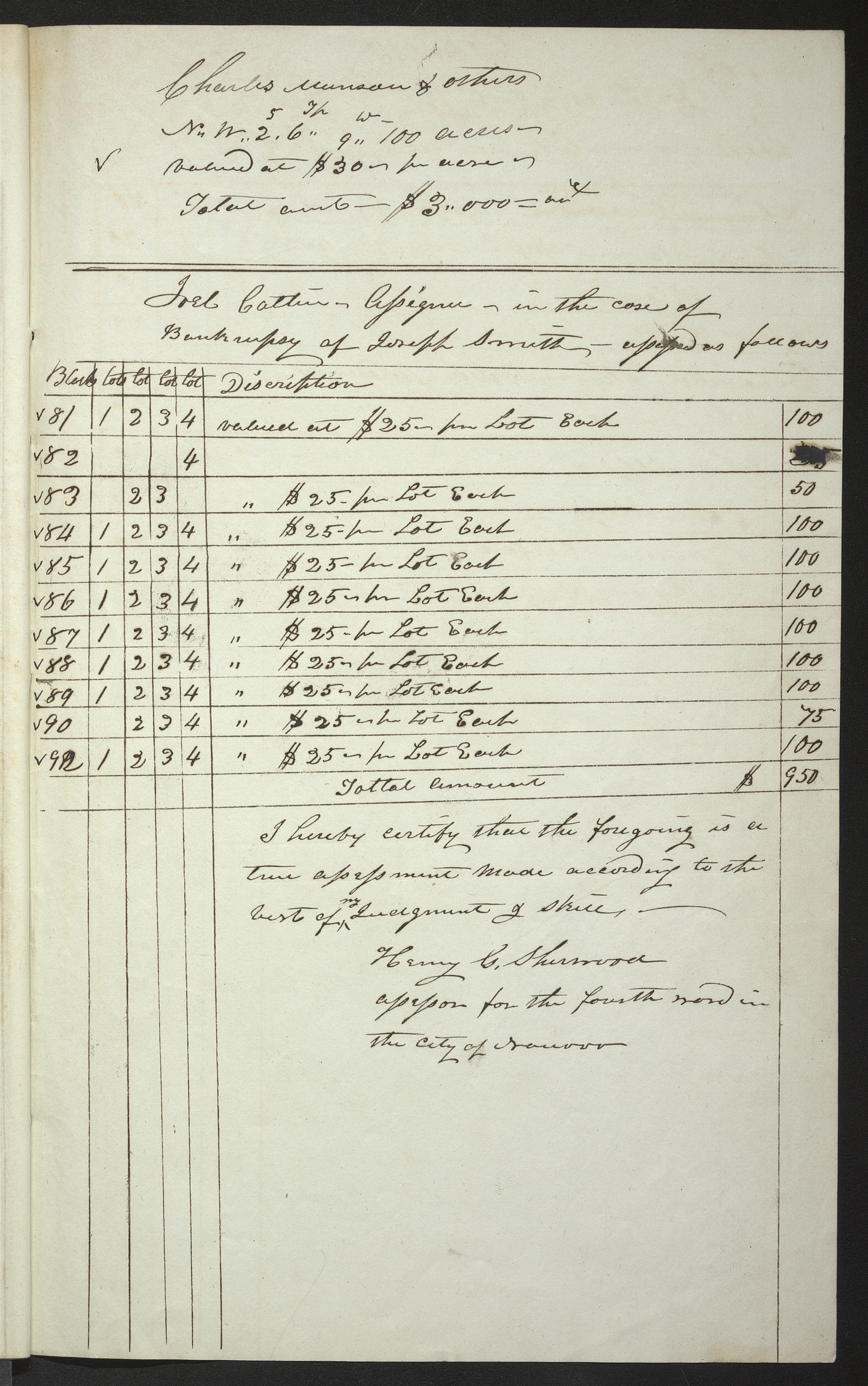 | <✓> 83 | 2 | 3 | [valued at] $25— per Lot Each | 50 | ||