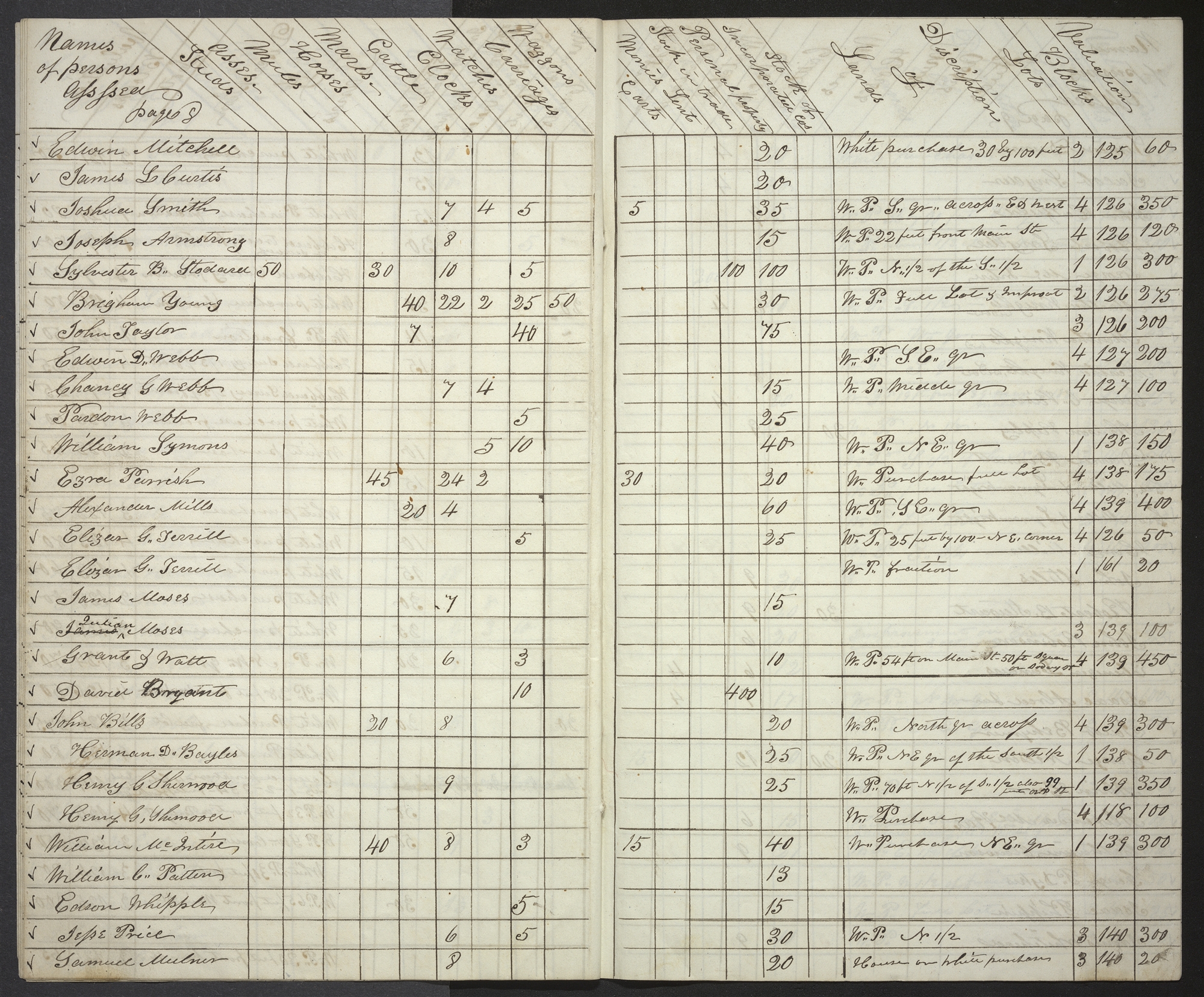 , List of Property in fourth ward, 1842, , Hancock Co., IL; inscribed [ca. 16 Nov. 1842–ca. 16 Feb. 1843]; handwriting of ; sixteen pages; Nauvoo, IL, Records, 1841–1845, CHL.