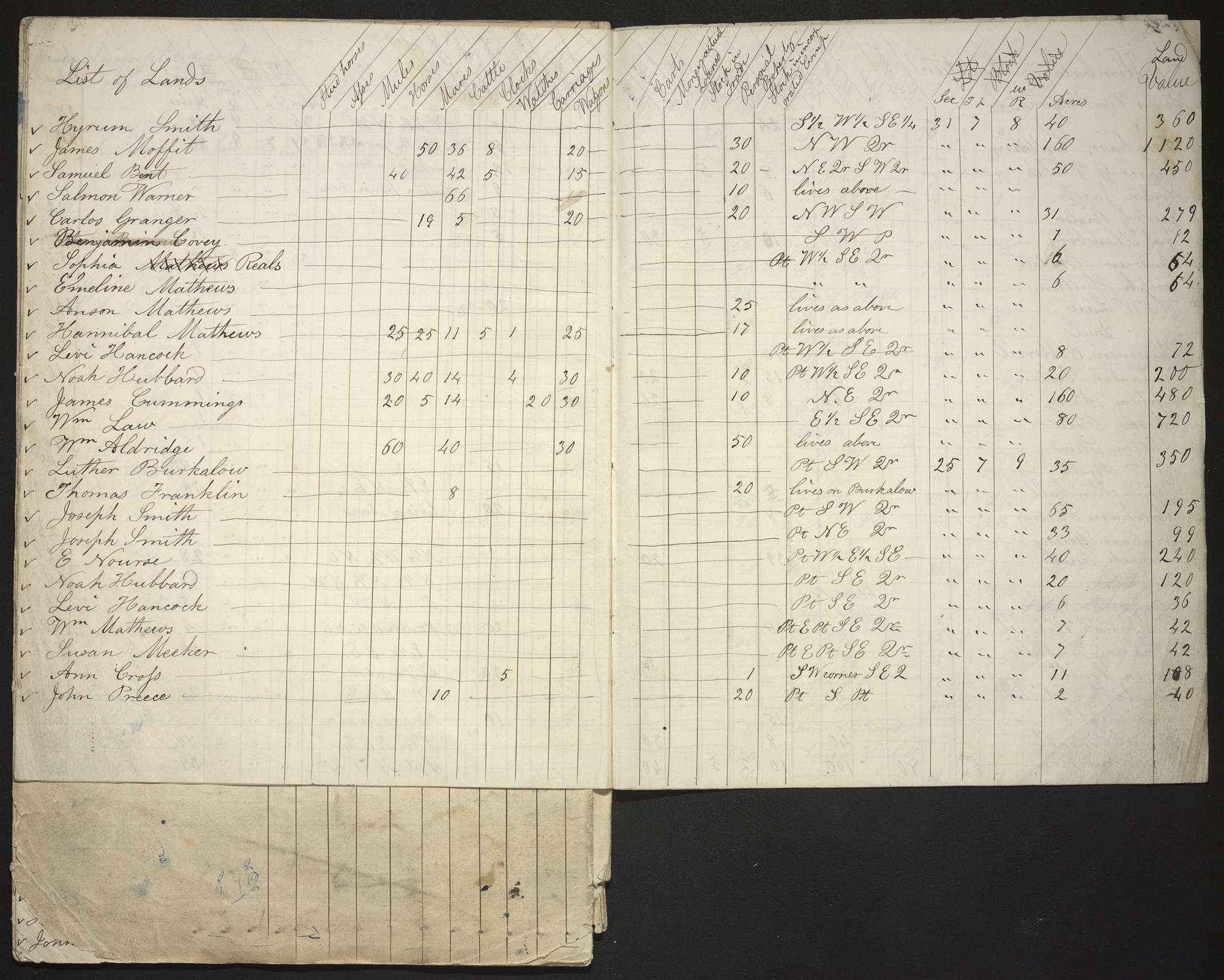 , List of Property in second ward, 1842, , Hancock Co., IL; inscribed [ca. 16 Nov. 1842–ca. 22 Feb. 1843]; handwriting of , and ; eighteen pages; Nauvoo, IL, Records, 1841–1845, CHL.