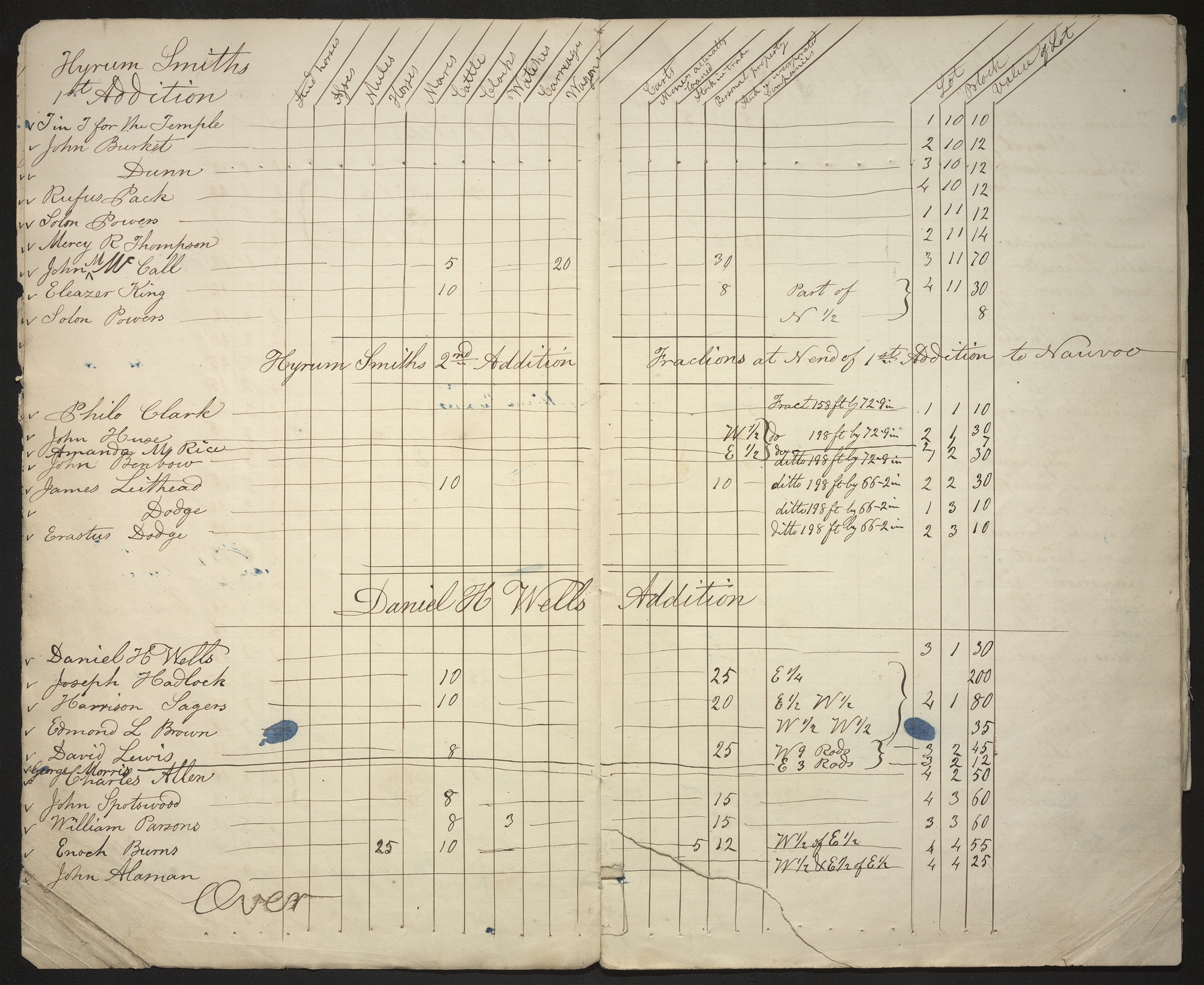 , List of Property in second ward, 1842, , Hancock Co., IL; inscribed [ca. 16 Nov. 1842–ca. 22 Feb. 1843]; handwriting of , and ; eighteen pages; Nauvoo, IL, Records, 1841–1845, CHL.