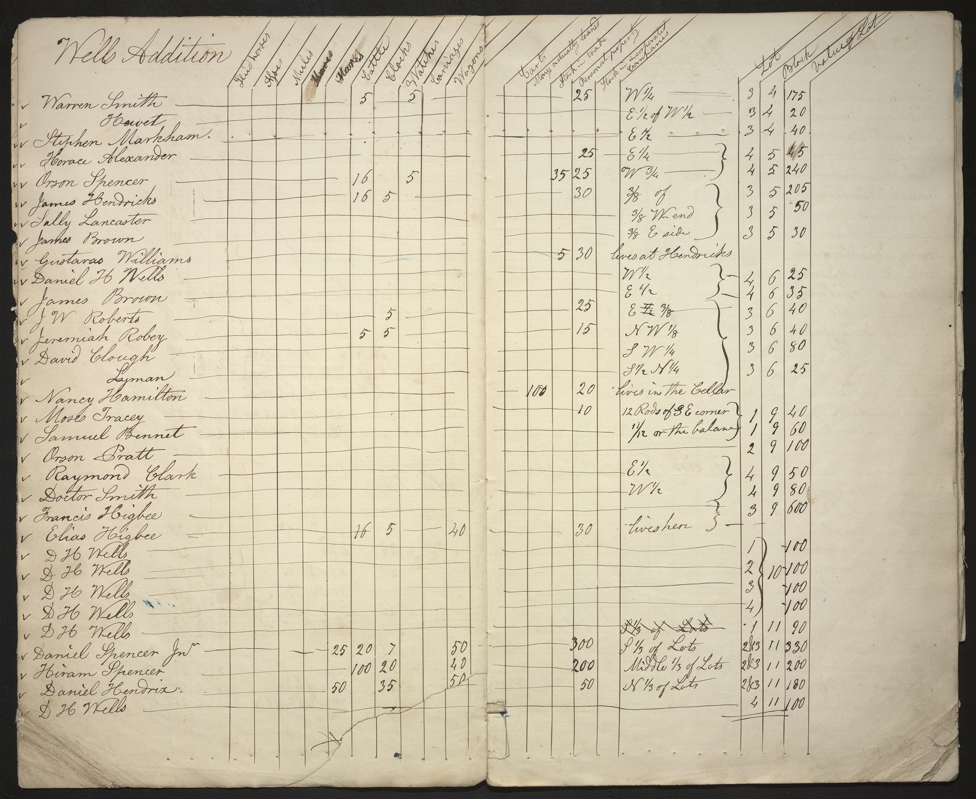 | <✓> Hiram Spencer | 100 | 20 | 40 | 200 | Middle 1/3 of Lots | 2&3 | 11 | 200 | |||||||||||