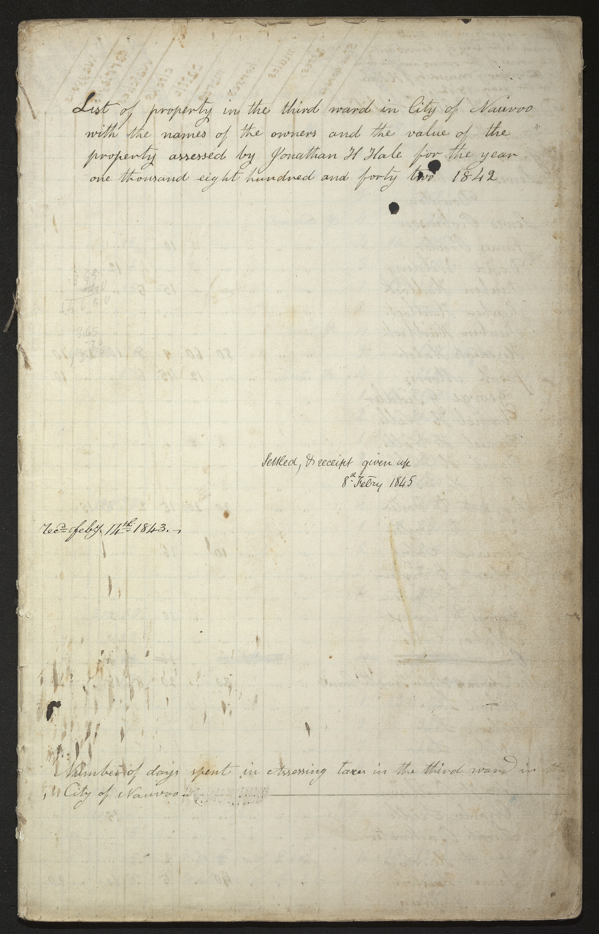 , List of Property in third ward, 1842, , Hancock Co., IL; inscribed [ca. 16 Nov. 1842–ca. 14 Feb. 1843]; handwriting of ; twenty-three pages; Nauvoo, IL, Records, 1841–1845, CHL.