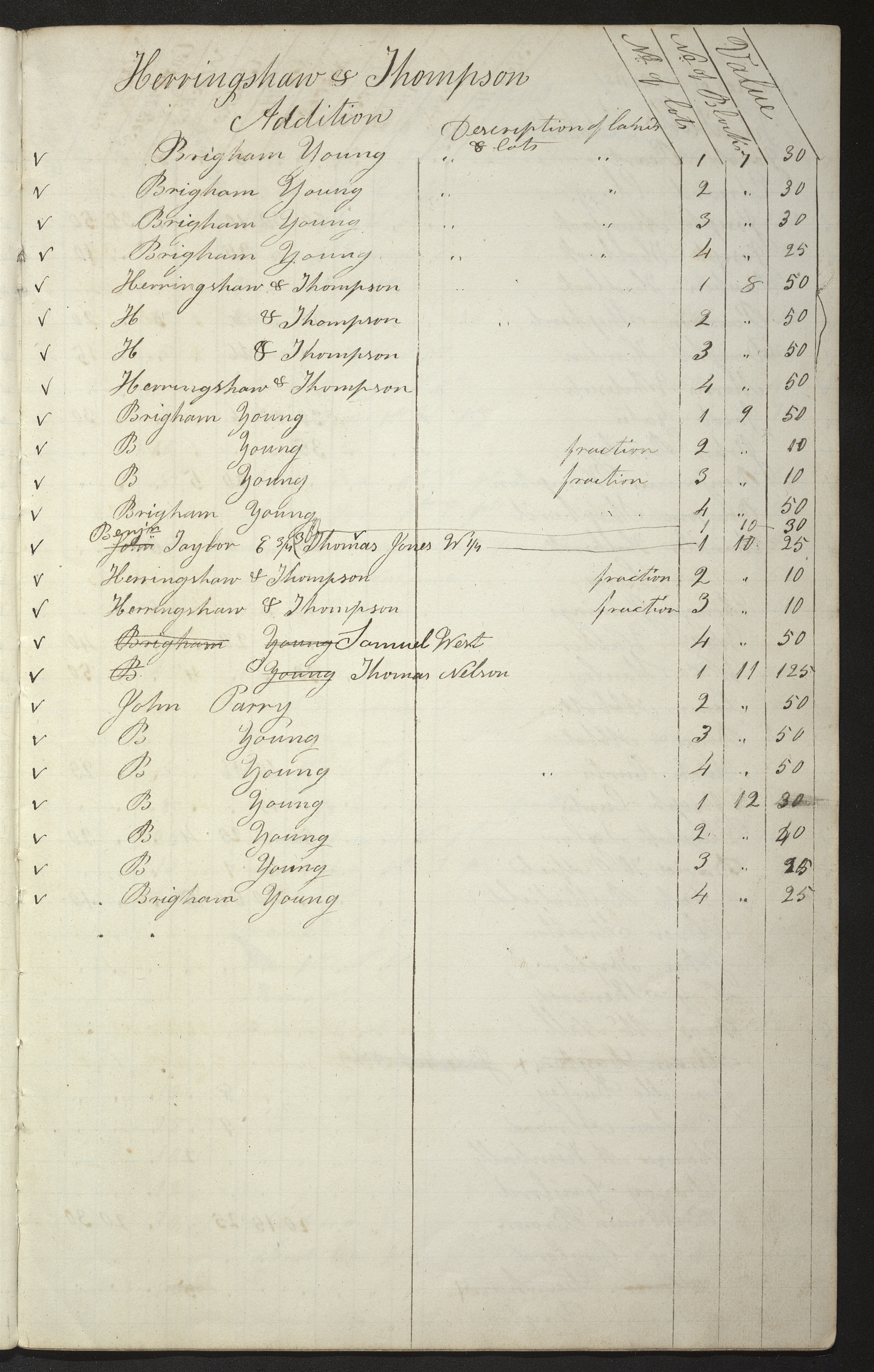 , List of Property in third ward, 1842, , Hancock Co., IL; inscribed [ca. 16 Nov. 1842–ca. 14 Feb. 1843]; handwriting of ; twenty-three pages; Nauvoo, IL, Records, 1841–1845, CHL.
