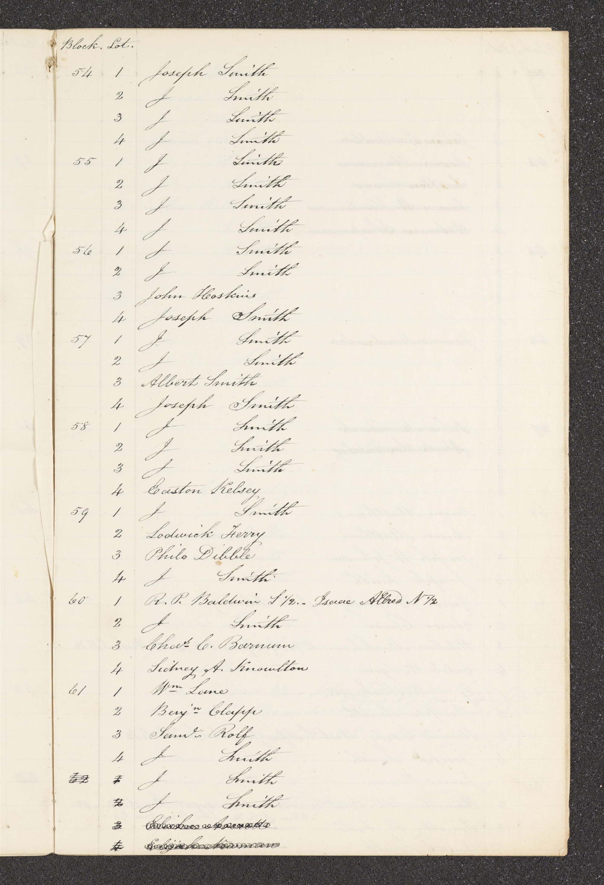 , List of Taxable Lots, copy for first ward; , Hancock Co., IL; ca. Nov. 1842; handwriting of ; fourteen pages; Nauvoo, IL, Records, 1841–1845, CHL.
