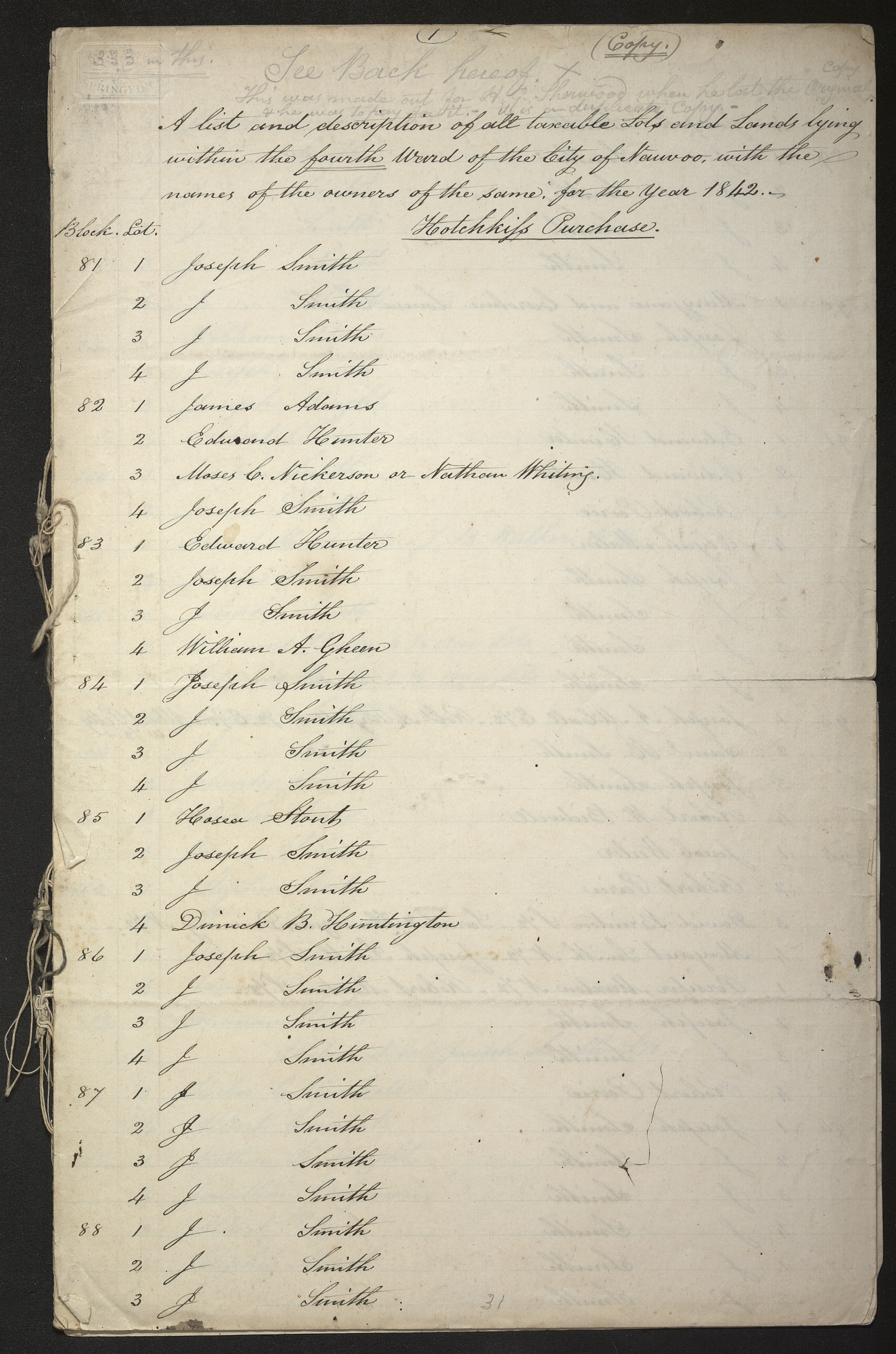 List of Taxable Lots in Nauvoo Fourth Ward, Second Copy