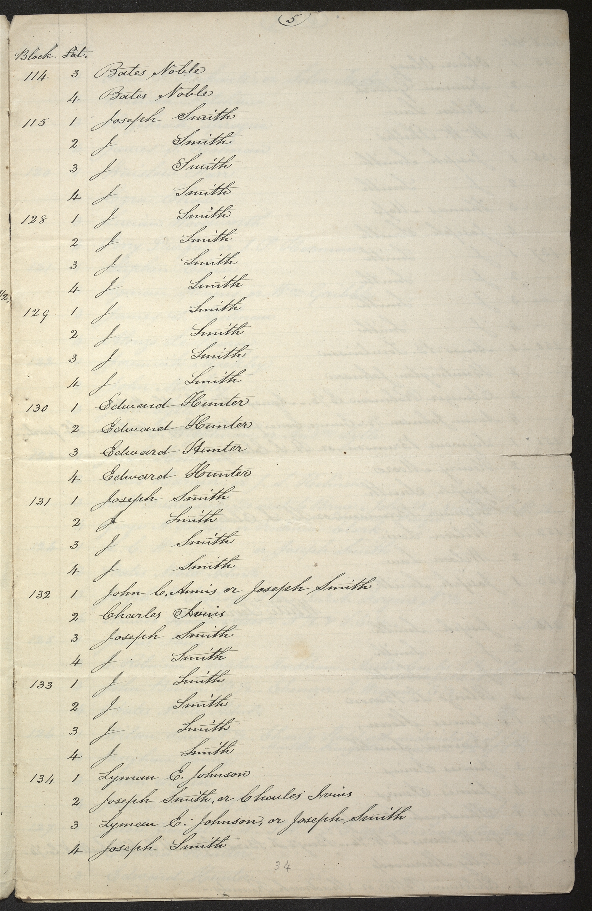 , List of Taxable Lots, second copy for fourth ward; , Hancock Co., IL; between ca. Nov. 1842 and ca. Feb. 1843; handwriting of ; notations in handwriting of and ; docket in handwriting of ; nine pages; Nauvoo, IL, Records, 1841–1845, CHL.