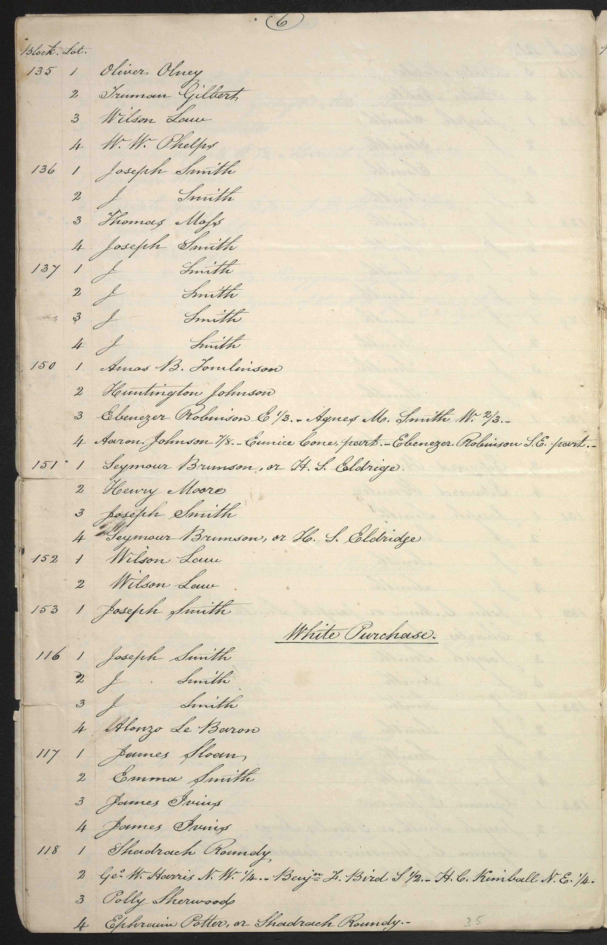 , List of Taxable Lots, second copy for fourth ward; , Hancock Co., IL; between ca. Nov. 1842 and ca. Feb. 1843; handwriting of ; notations in handwriting of and ; docket in handwriting of ; nine pages; Nauvoo, IL, Records, 1841–1845, CHL.