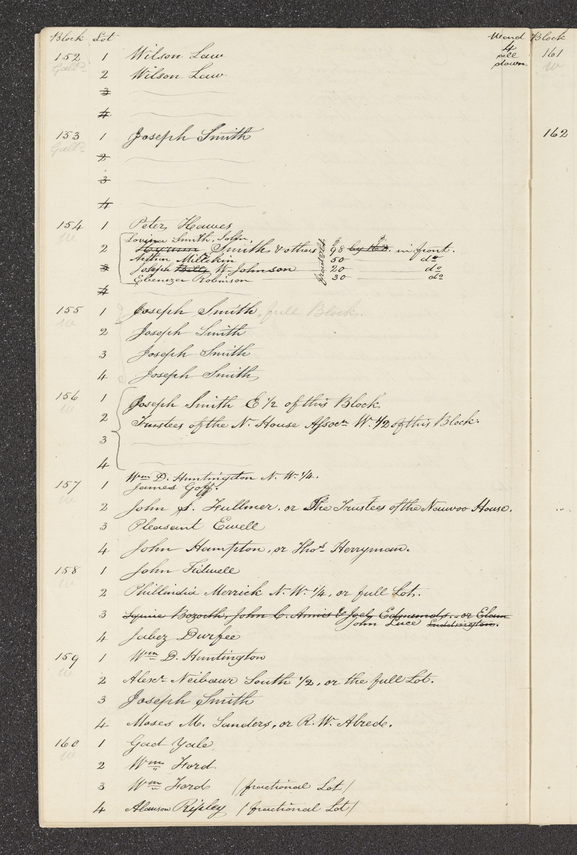 | 156 <> | 1 | (Joseph Smith E ½ of this Block | ||||||||||
