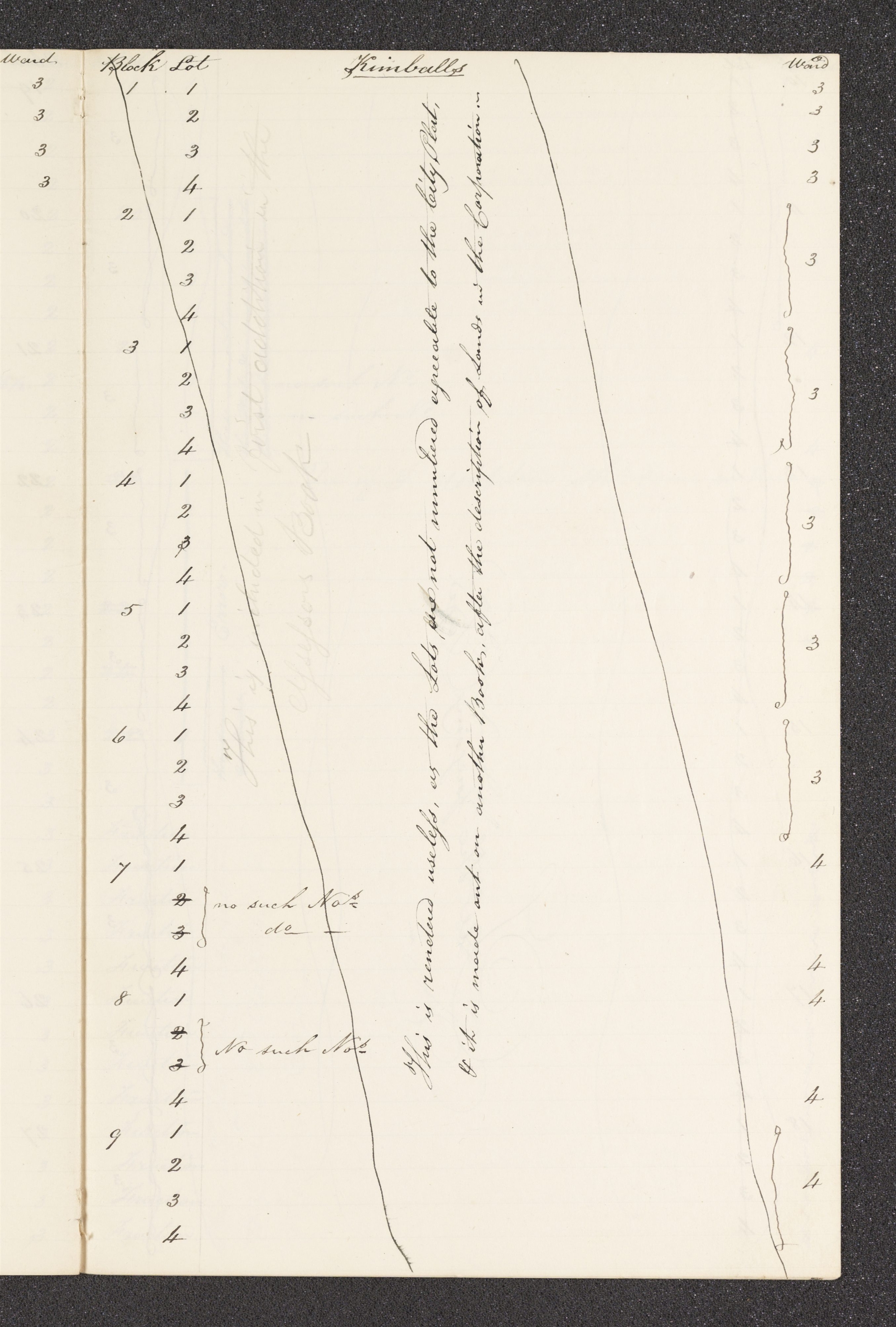 | 3 | <This is rendered useless, as the Lots are not numbered agreeable to the City Plat, & it is made out on another Book, after the description of Lands in the Corporation.—> | ||