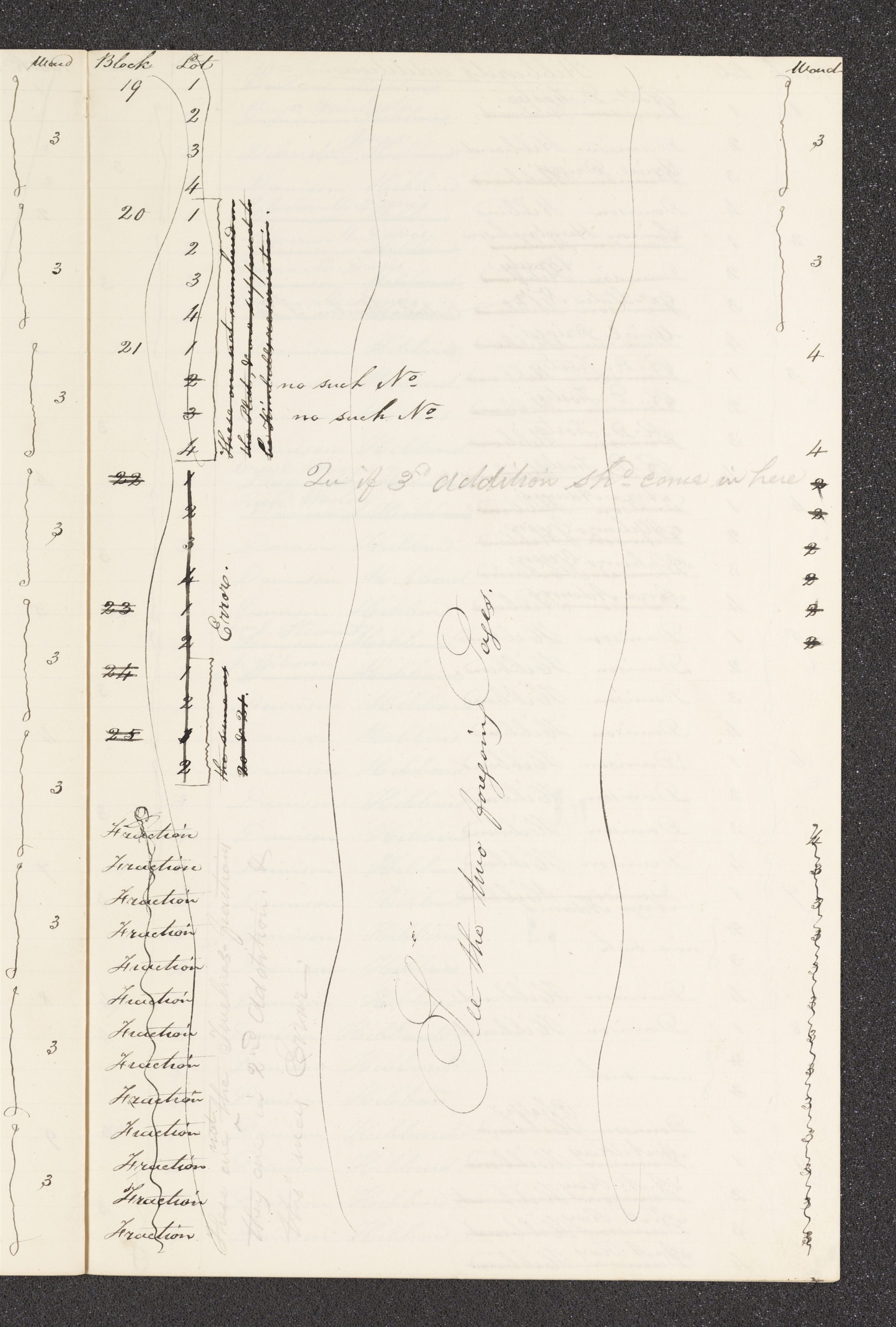 TEXT: Insertion written vertically, spanning entries for blocks 20 and 21.