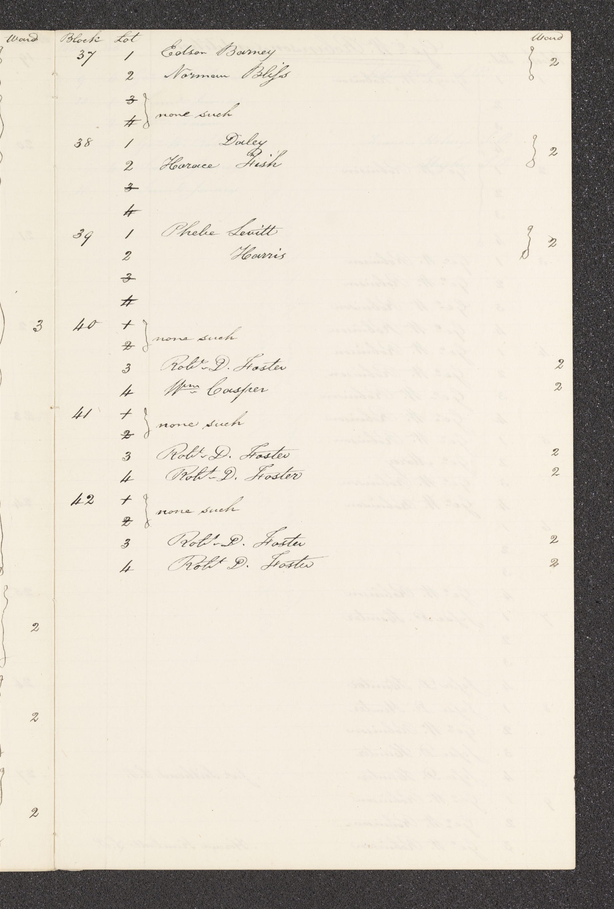 , List of Taxable Lots in Nauvoo, Hancock Co., IL, ca. Nov. 1842; handwriting of and ; sixty-two pages; Nauvoo, IL, Records, 1841–1845, CHL.