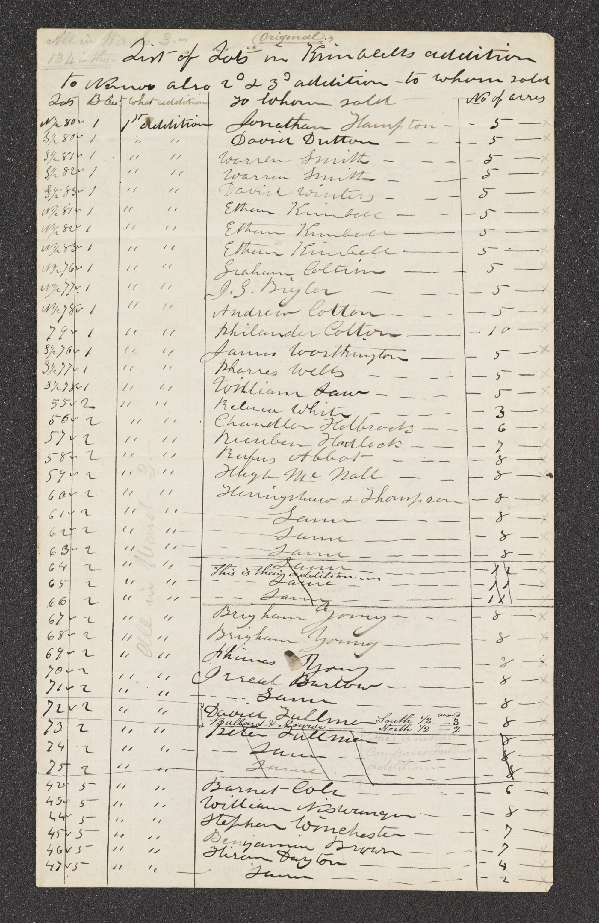 List of Lots in s addition to also 2d & 3d addition to whom sold