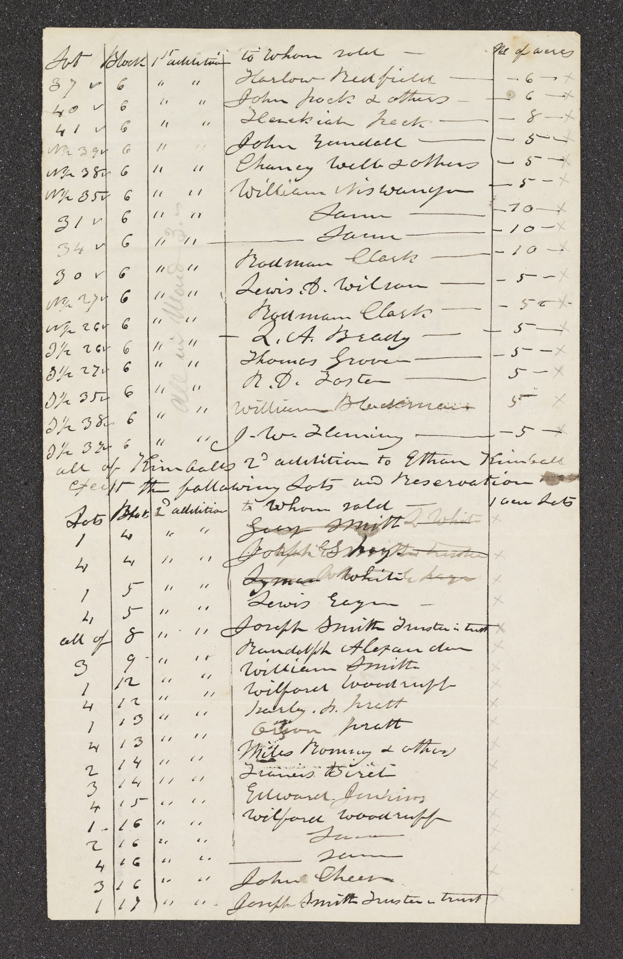 , List of Taxable Lots in Nauvoo, Hancock Co., IL, ca. Nov. 1842; handwriting of and ; sixty-two pages; Nauvoo, IL, Records, 1841–1845, CHL.