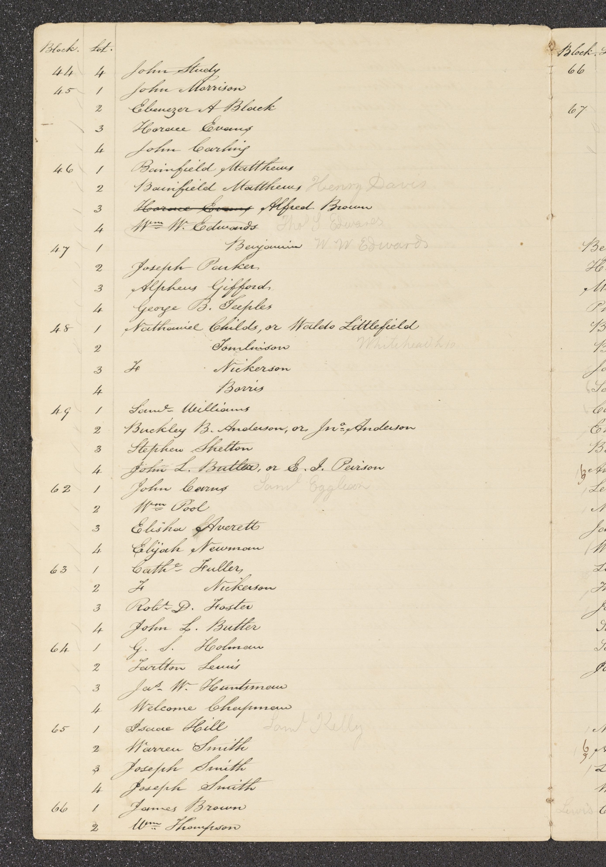 , List of Taxable Lots, copy for second ward, , Hancock Co., IL; ca. Nov. 1842; handwriting of ; twelve pages; Nauvoo, IL, Records, 1841–1845, CHL.
