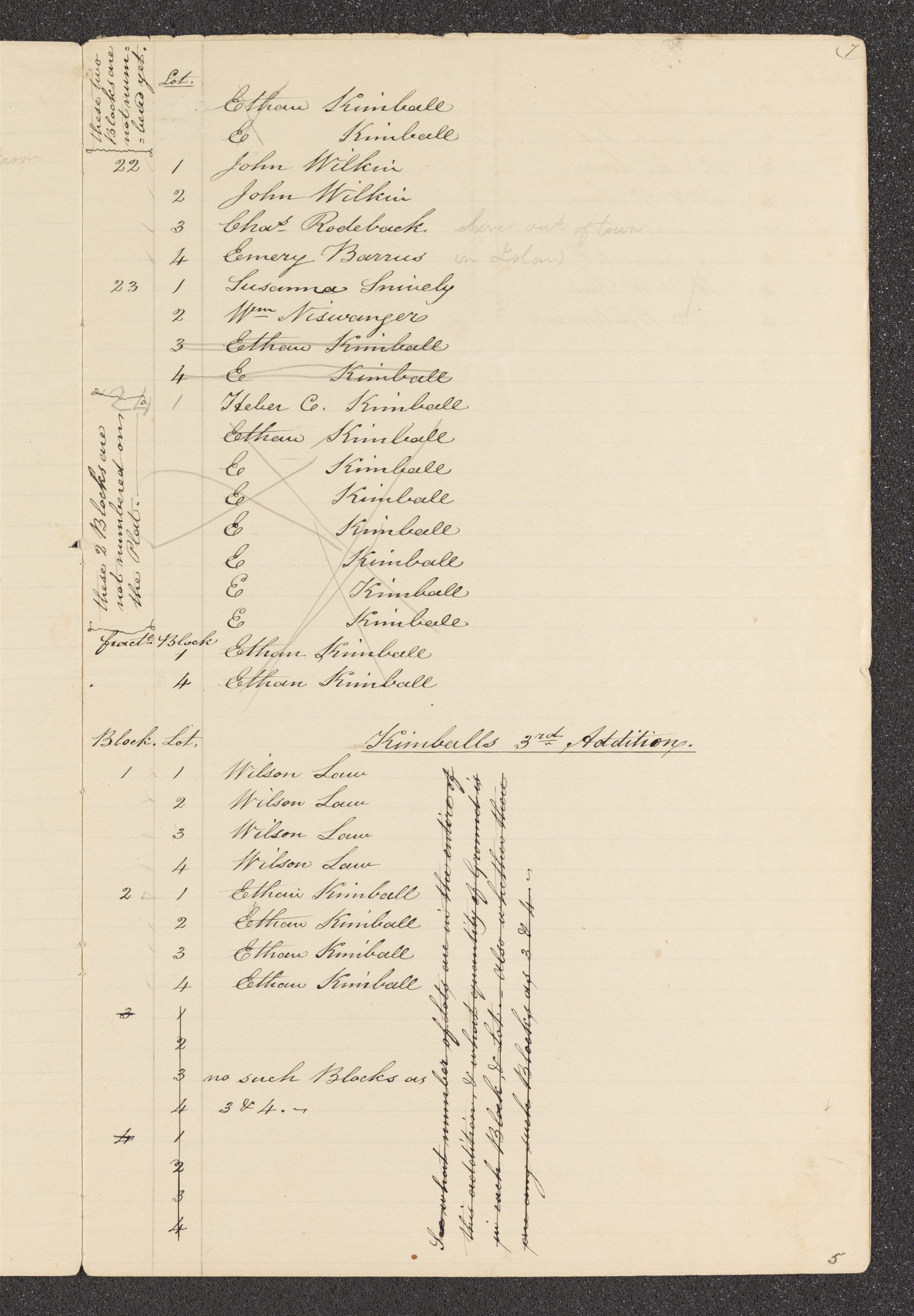 | 1 | 1 | <See what number of Lots are in the entire of this addition, & what quantity of Ground is in each Block, & Lot.— Also whether there are any such Blocks as 3 & 4.—> |