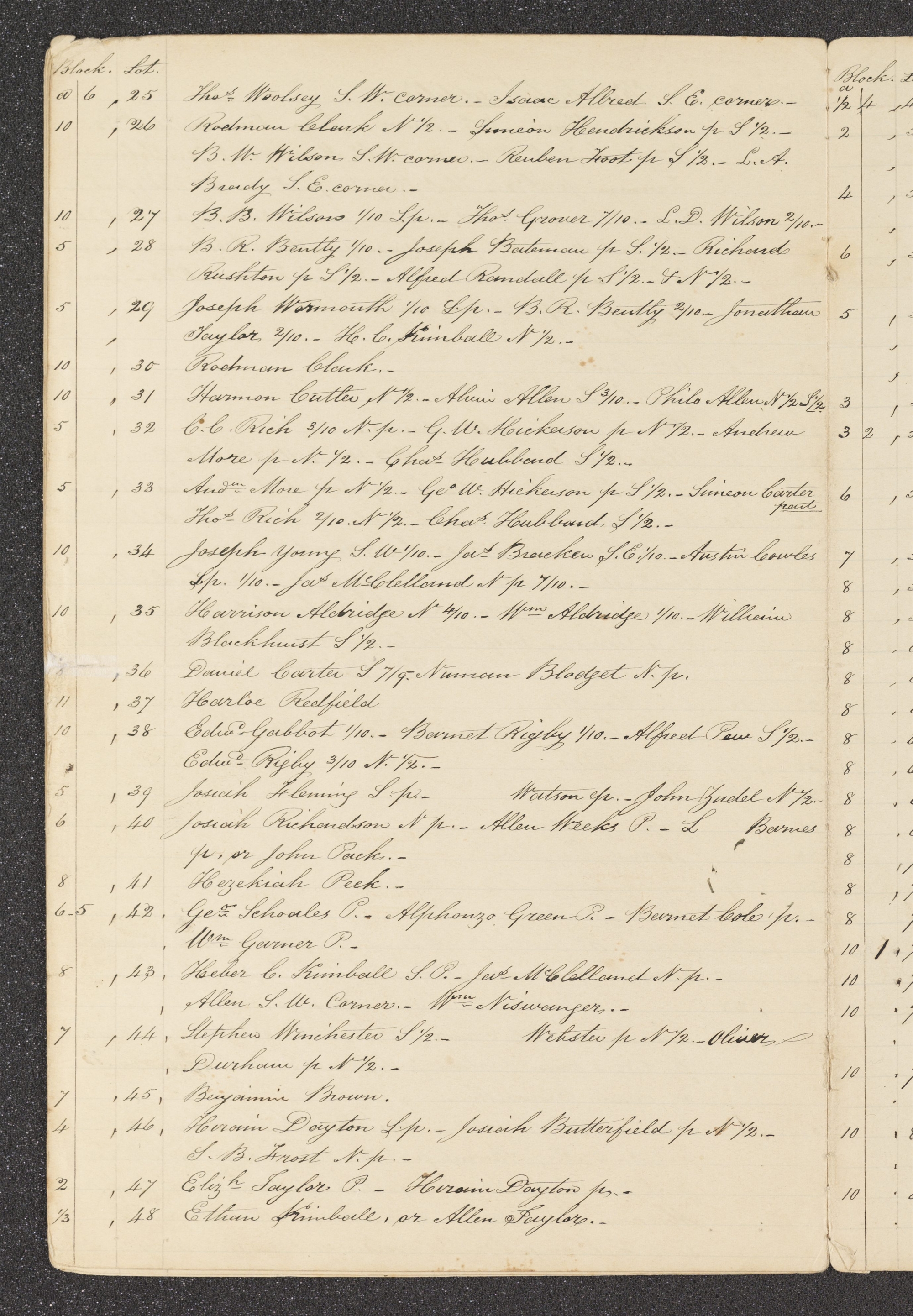 | 10 | 26 | N½.— p S½.— B. W. Wilson S.W. corner.— Reuben Foot[e] p S½.— S.E. corner.— |