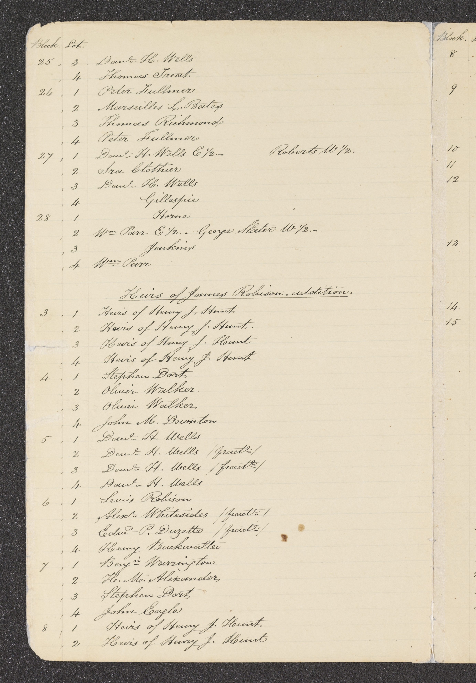 | Block. | Lot. | |