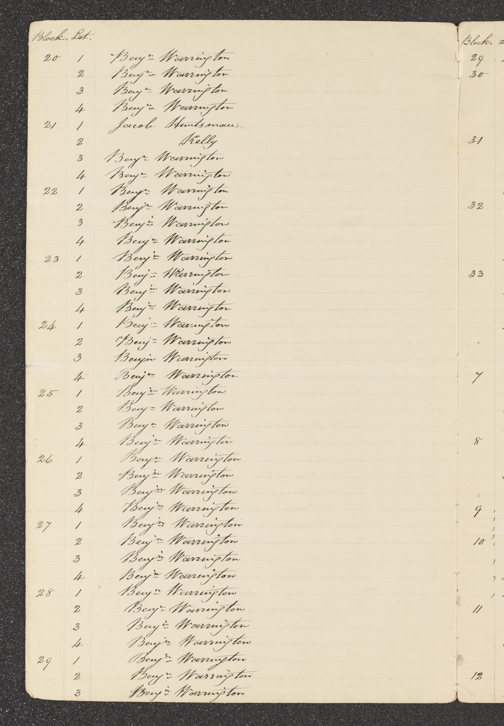 , List of Taxable Lots, copy for third ward, , Hancock Co., IL, ca. Nov. 1842; handwriting of ; sixteen pages; Nauvoo, IL, Records, 1841–1845, CHL.