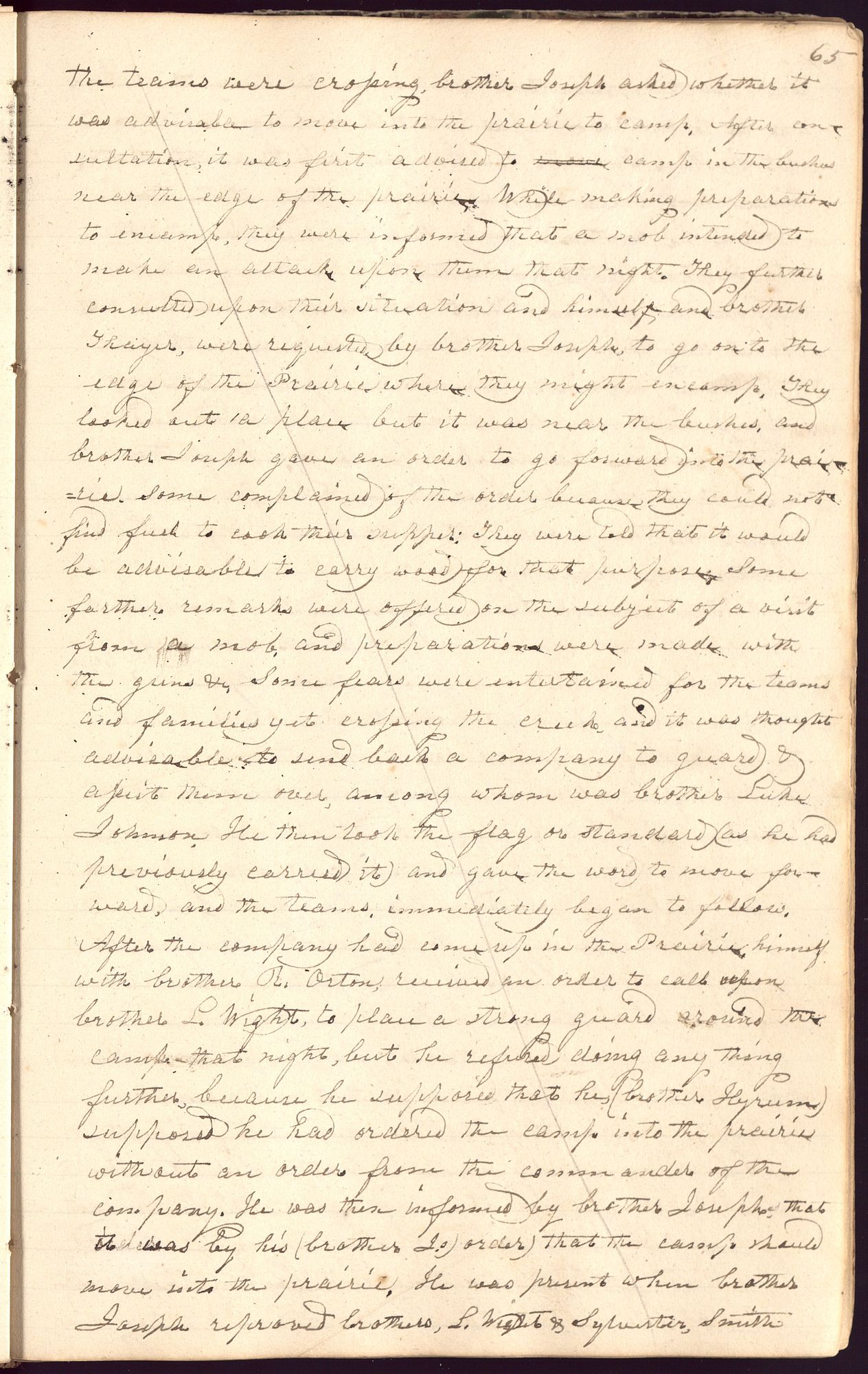 George A. Smith later recalled that “Hyrum said he knew in the name of the Lord, that it was best to go onto the Prairie.” Because Hyrum was JS’s elder brother, George A. Smith continued, “Brother Joseph thought best to heed his counsel.” (George A. Smith, Autobiography, 34.)