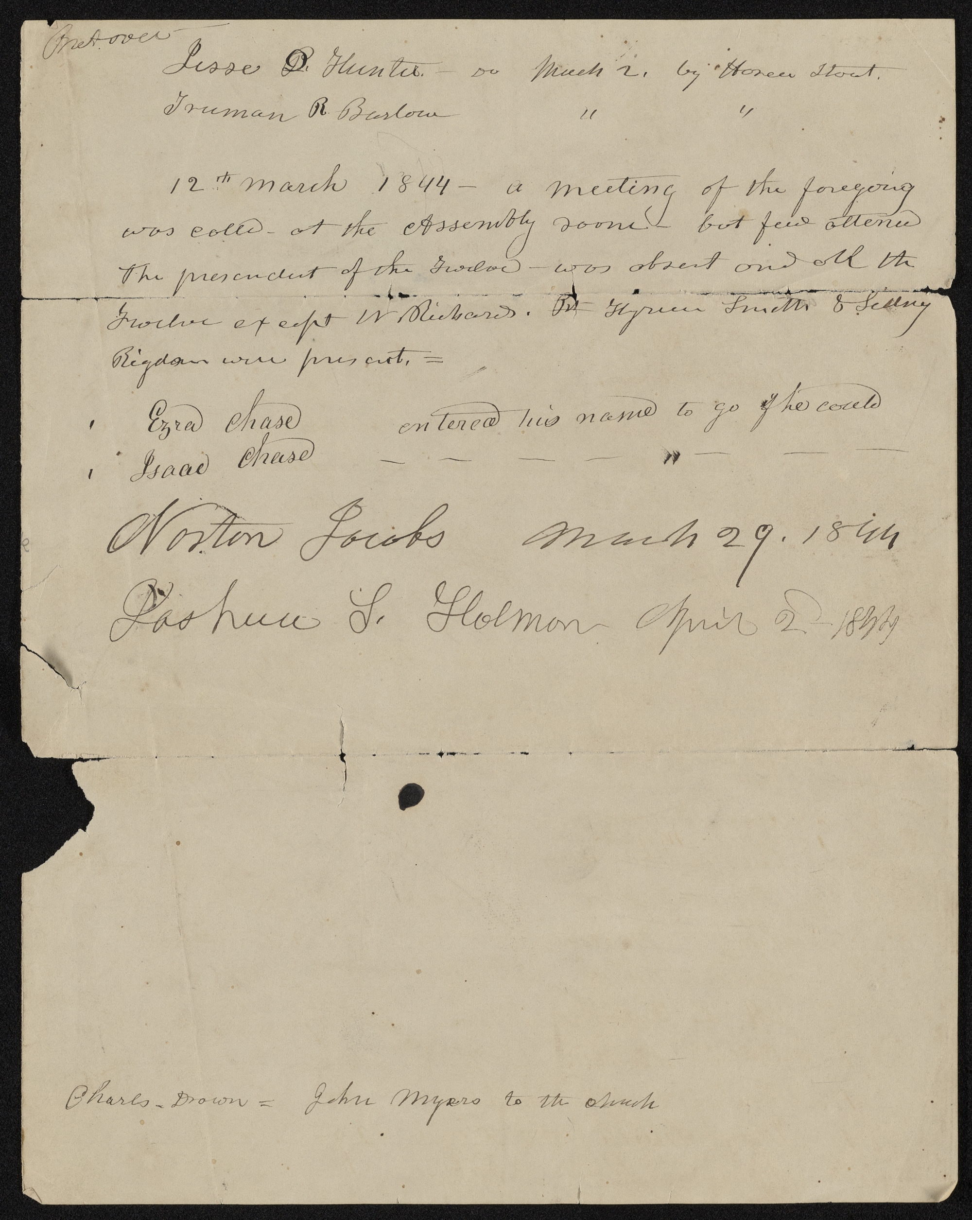, Minutes and JS, Discourse, , Hancock Co., IL, 23 Feb. 1844; handwriting of with graphite revisions by ; docket in handwriting of ; three pages; Quorum of the Twelve Apostles, Minutes, 1840–1844, CHL.