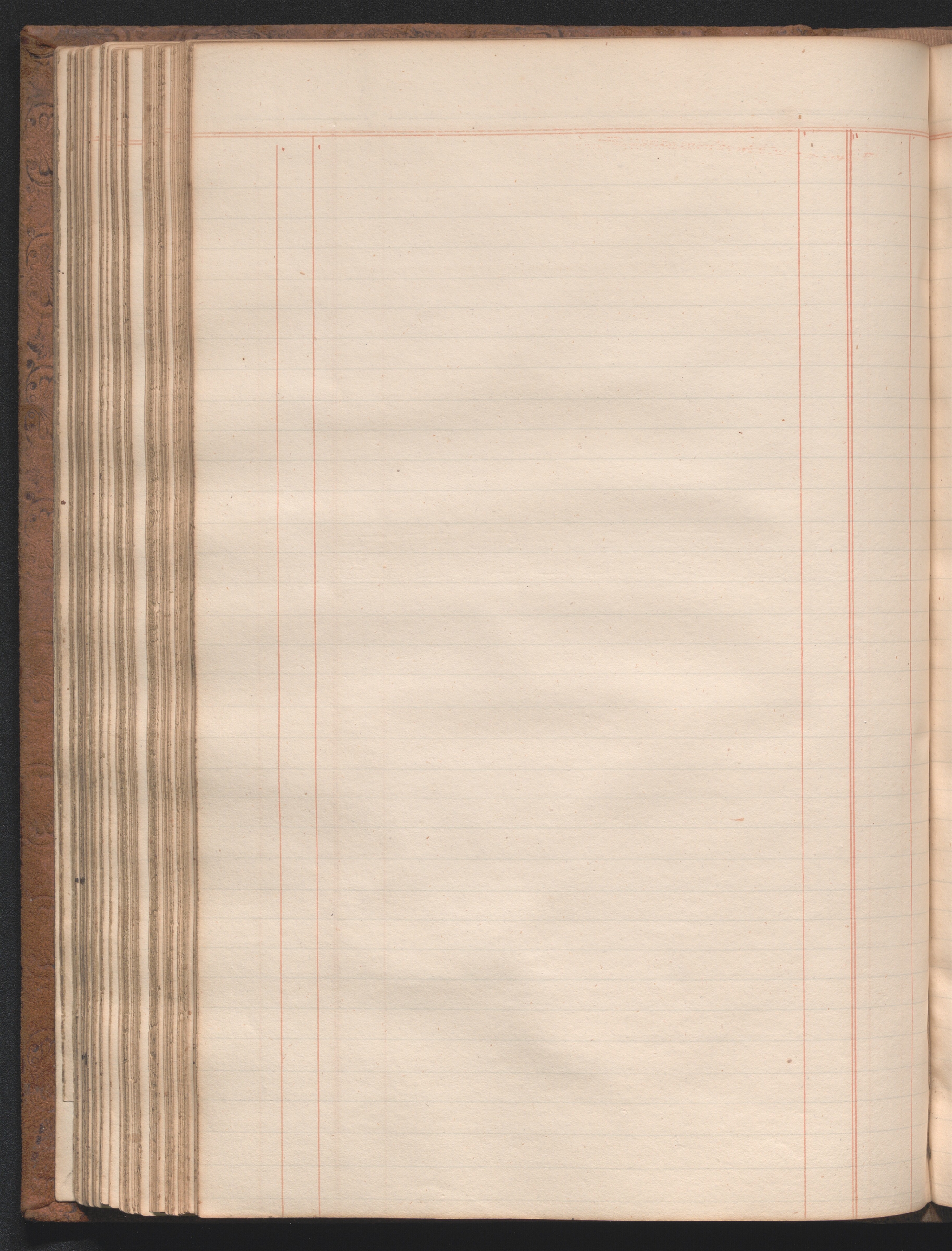 The first inscription in the book is the headers “Woods” and “Cr.” above two columns on the first extant ruled page following the tabbed index pages, suggesting that the book was originally intended to be an account book. This use was aborted, as evidenced by the removal of the second front flyleaf—which may have contained a title page—as well as the final “XYZ” tabbed index page and the additional ten leaves that would have been paginated 1 through 20. Additionally, none of the extant index pages include any inscription.