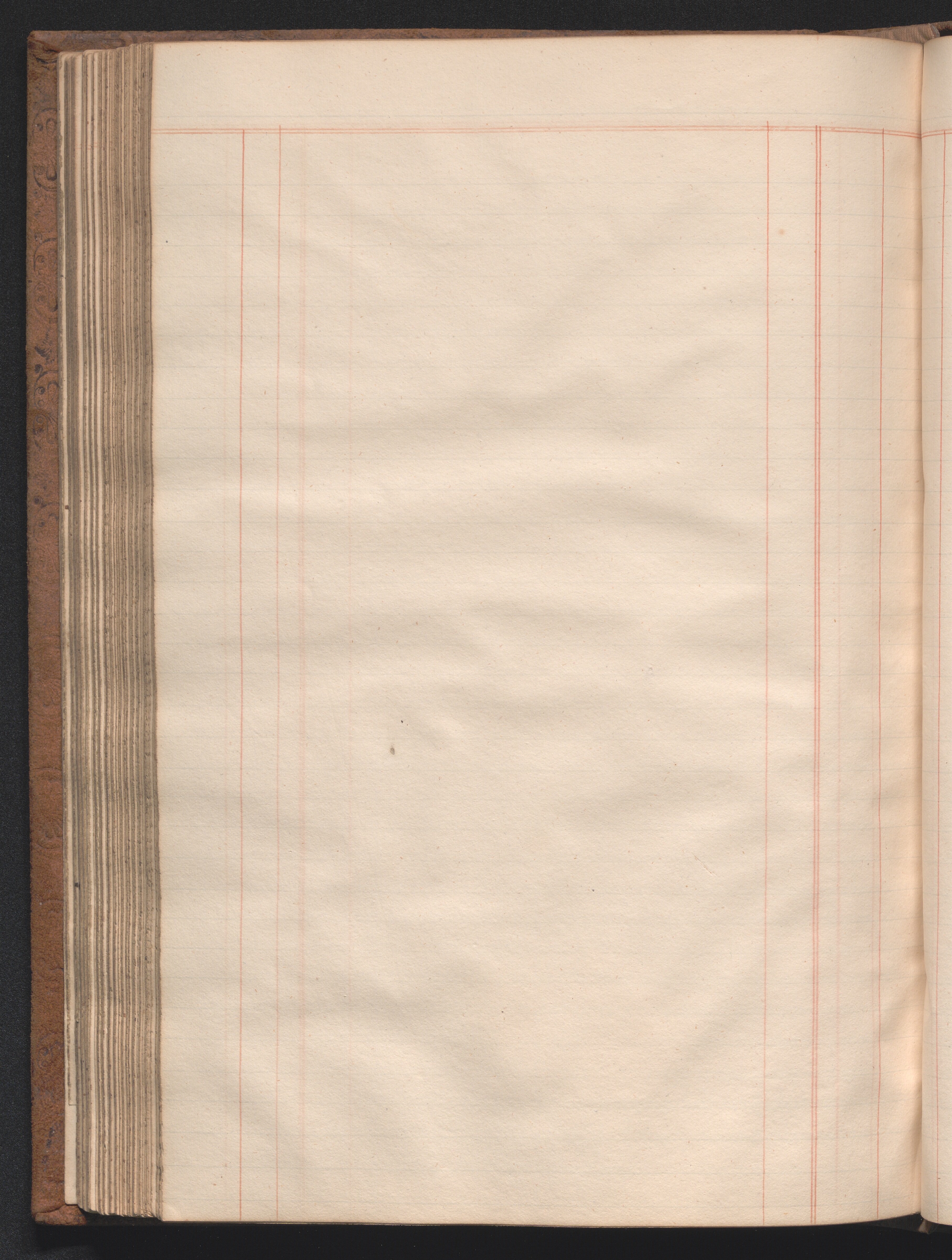 The first inscription in the book is the headers “Woods” and “Cr.” above two columns on the first extant ruled page following the tabbed index pages, suggesting that the book was originally intended to be an account book. This use was aborted, as evidenced by the removal of the second front flyleaf—which may have contained a title page—as well as the final “XYZ” tabbed index page and the additional ten leaves that would have been paginated 1 through 20. Additionally, none of the extant index pages include any inscription.