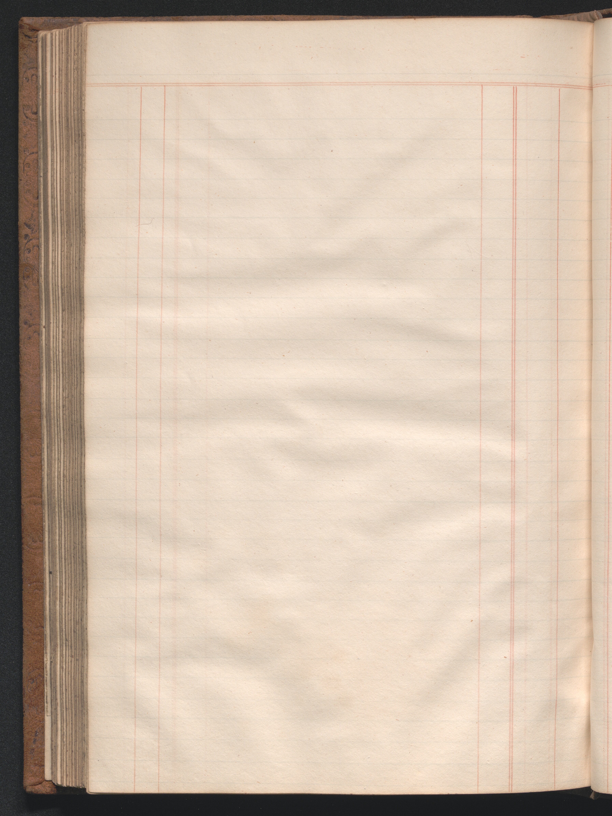 The first inscription in the book is the headers “Woods” and “Cr.” above two columns on the first extant ruled page following the tabbed index pages, suggesting that the book was originally intended to be an account book. This use was aborted, as evidenced by the removal of the second front flyleaf—which may have contained a title page—as well as the final “XYZ” tabbed index page and the additional ten leaves that would have been paginated 1 through 20. Additionally, none of the extant index pages include any inscription.