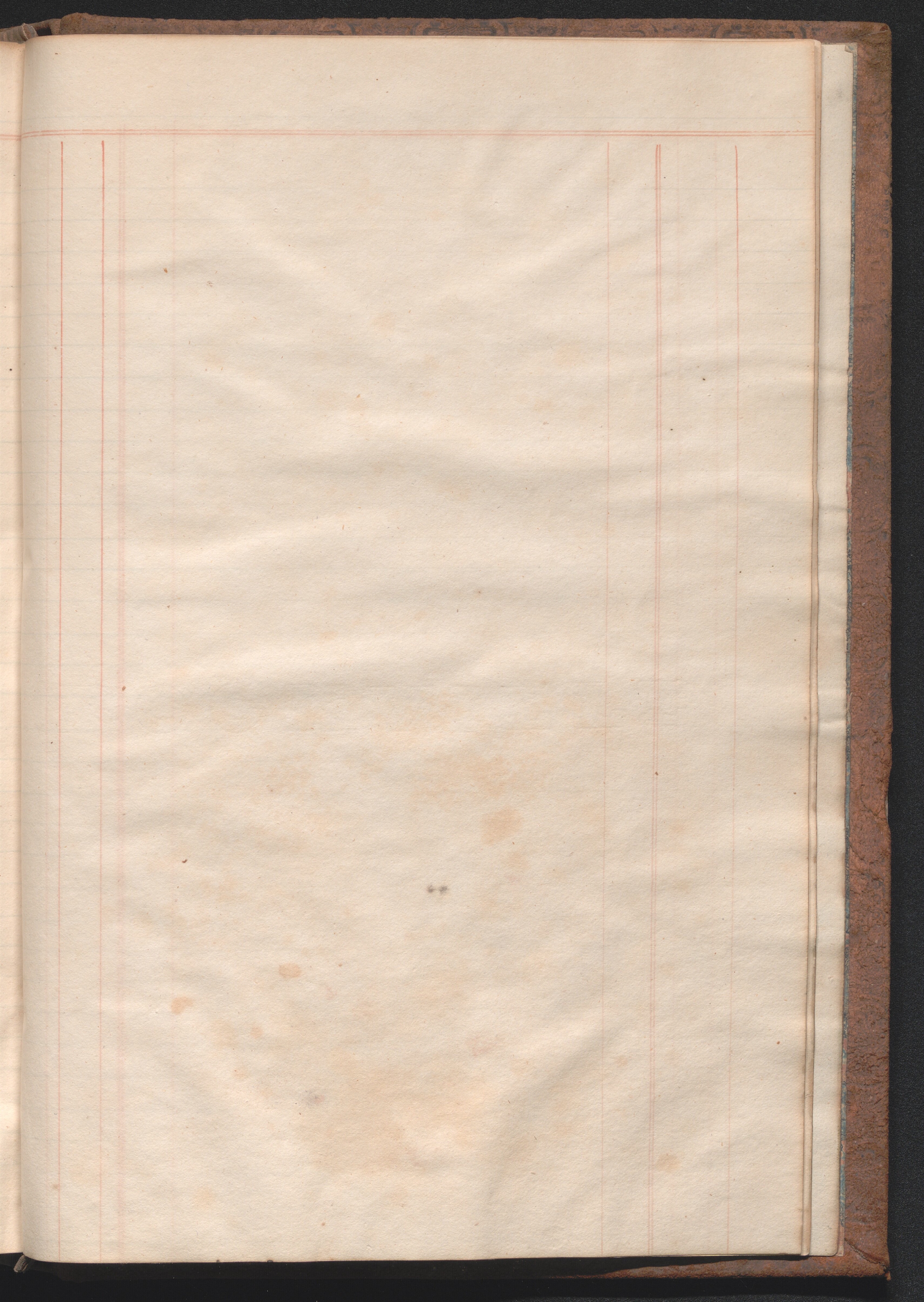 The first inscription in the book is the headers “Woods” and “Cr.” above two columns on the first extant ruled page following the tabbed index pages, suggesting that the book was originally intended to be an account book. This use was aborted, as evidenced by the removal of the second front flyleaf—which may have contained a title page—as well as the final “XYZ” tabbed index page and the additional ten leaves that would have been paginated 1 through 20. Additionally, none of the extant index pages include any inscription.