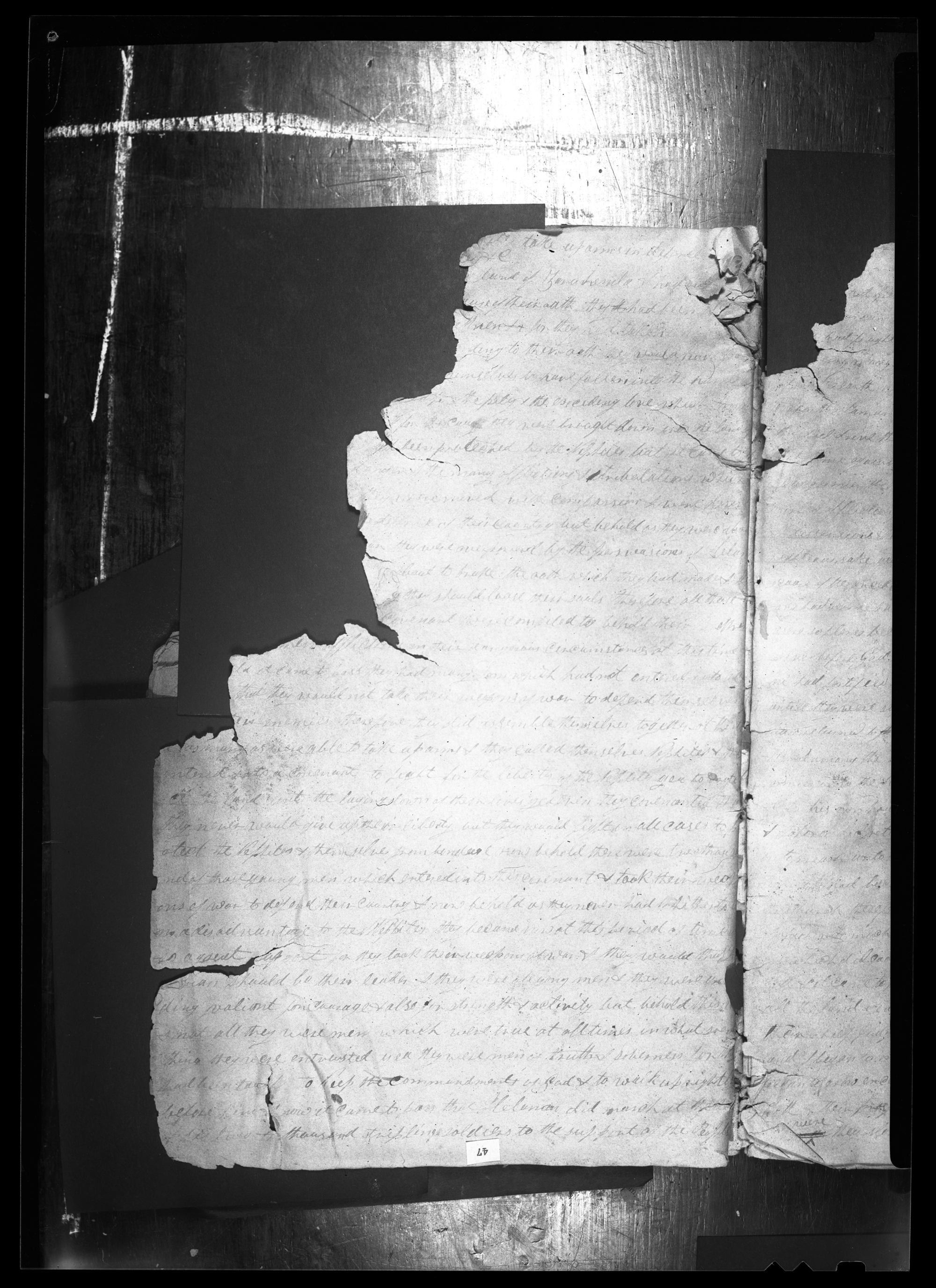 Original Manuscript of the Book of Mormon, 1948 Photographs; CHL. For more complete source information, see the source note for Original Manuscript of the Book of Mormon, ca. 12 Aprl 1828–ca. 1 July 1829; and the Note on Photographic Facsimiles, Original Manuscript of the Book of Mormon.