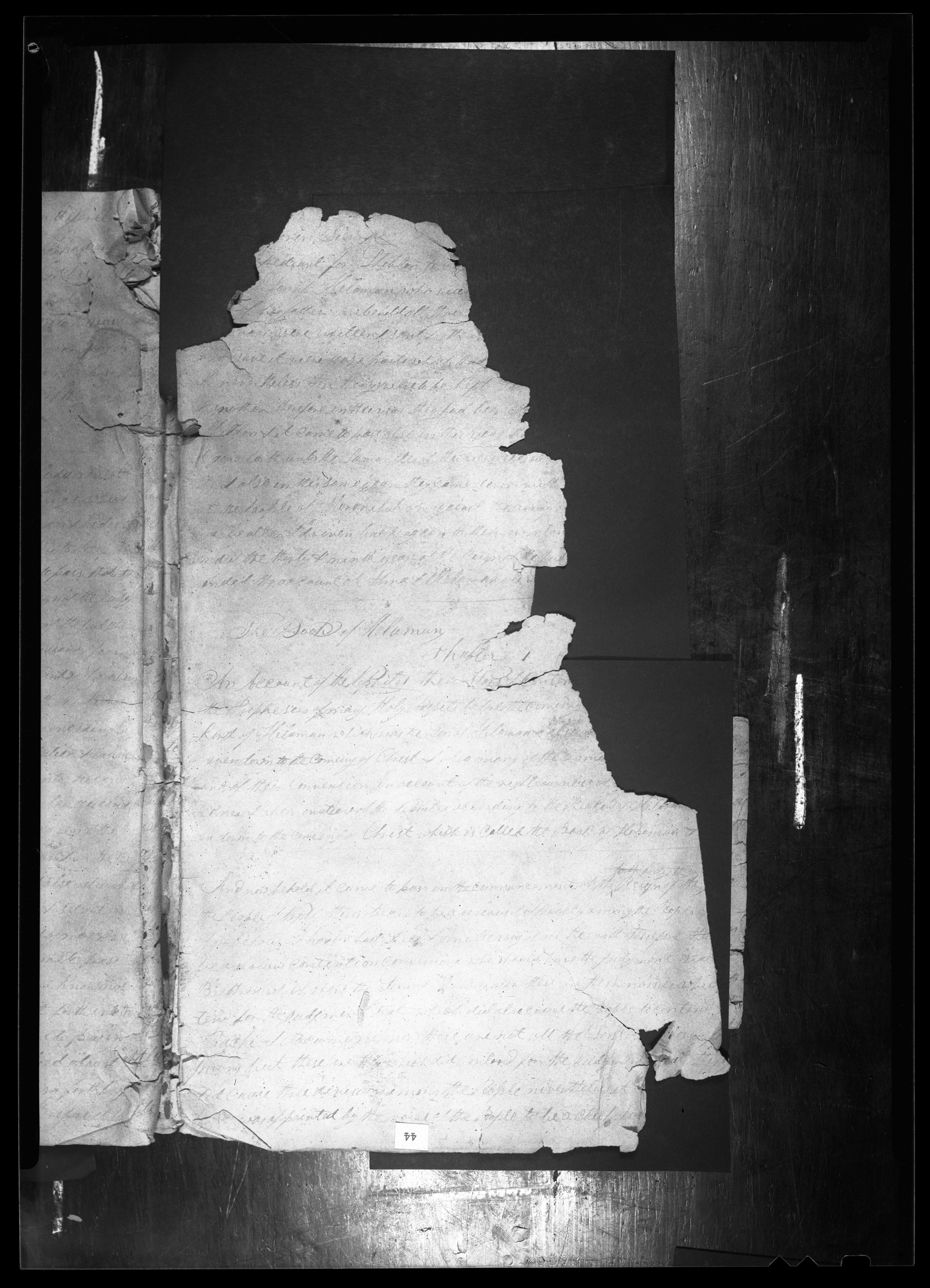 Original Manuscript of the Book of Mormon, 1948 Photographs; CHL. For more complete source information, see the source note for Original Manuscript of the Book of Mormon, ca. 12 Aprl 1828–ca. 1 July 1829; and the Note on Photographic Facsimiles, Original Manuscript of the Book of Mormon.