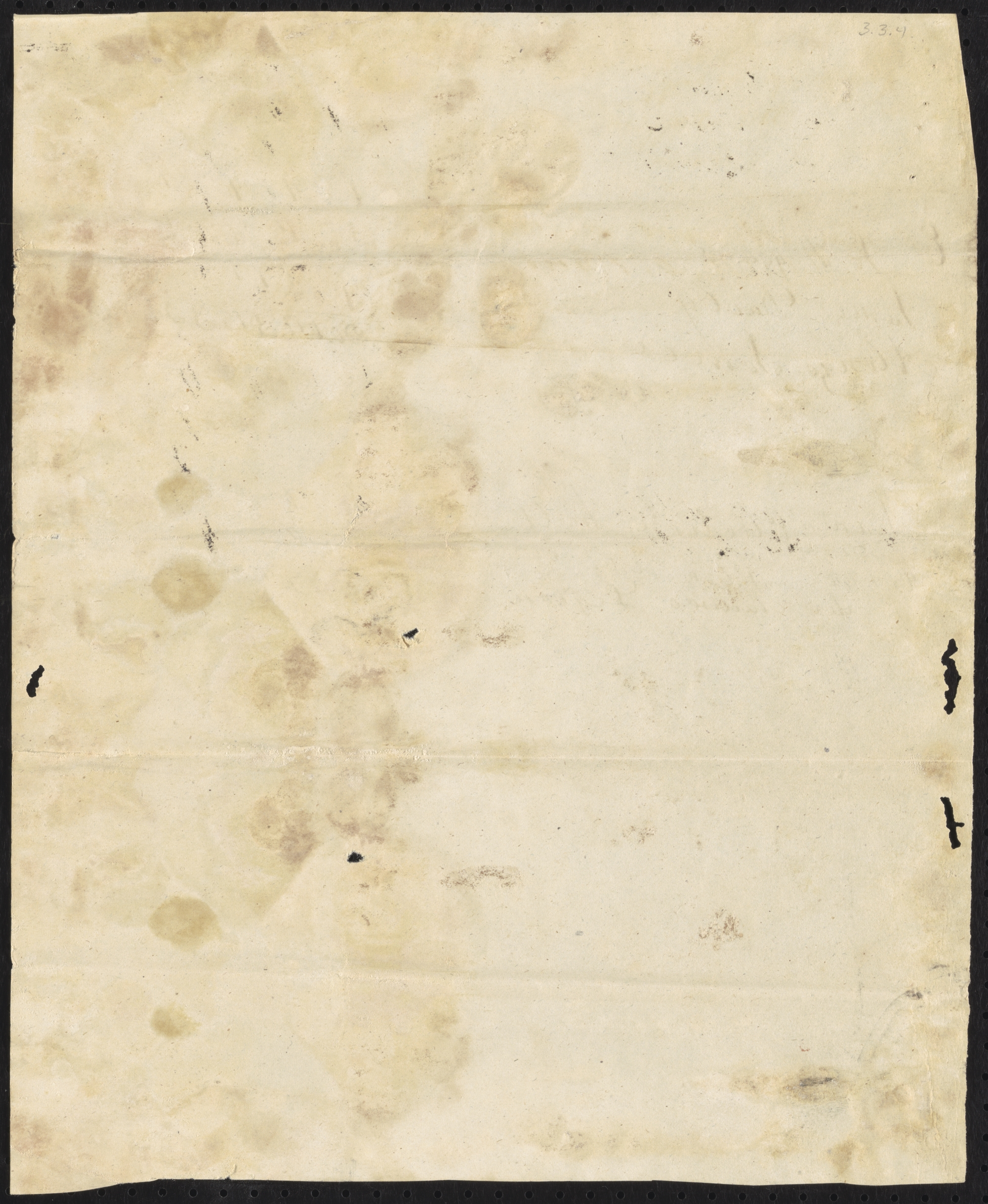 A nearly perfect circle on the verso of the second leaf and a matching circle on the recto of the third leaf may indicate there was an adhesive wafer holding these two leaves together.