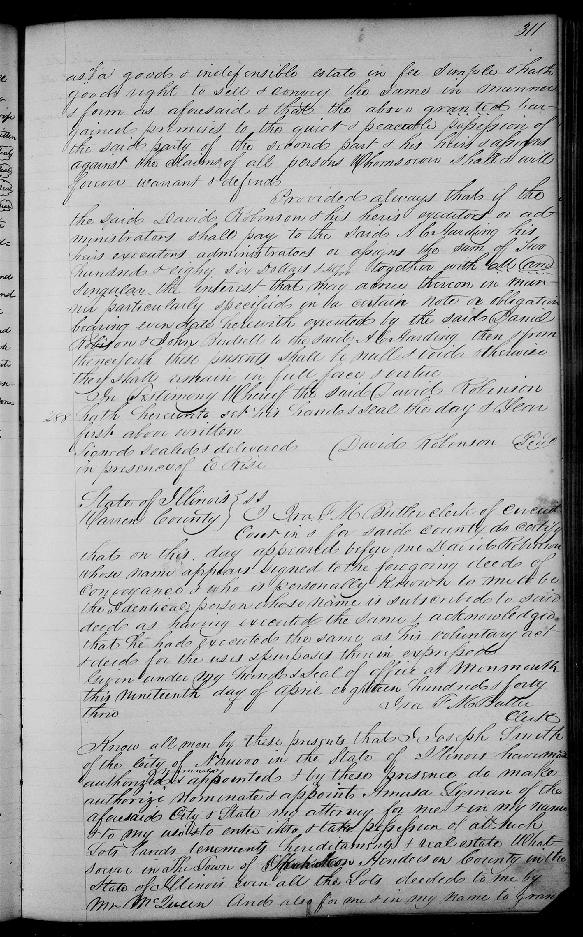 Power of Attorney to Amasa Lyman, 28 February 1843, as Recorded in Henderson County Deeds