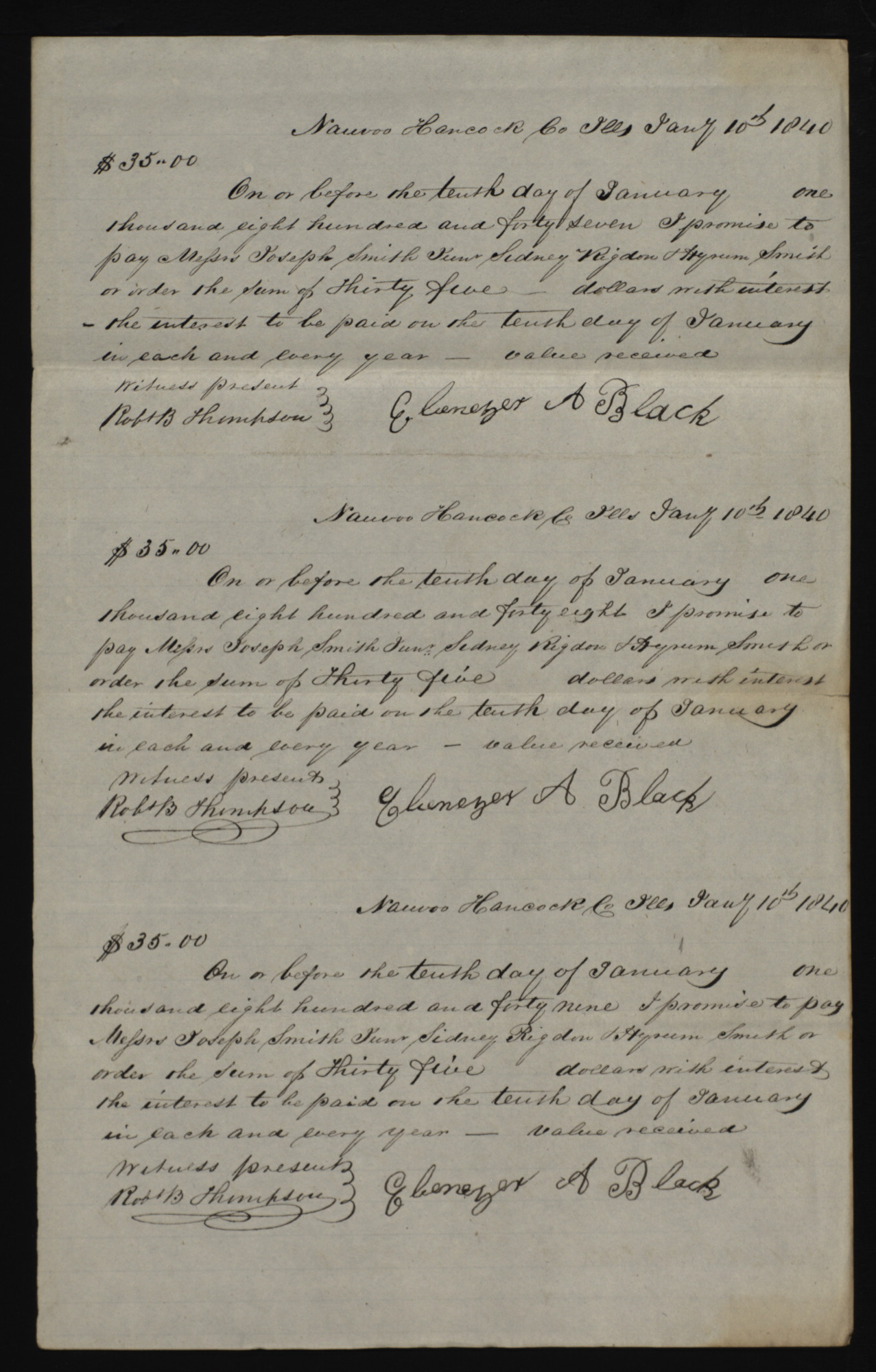 Promissory Note from Ebenezer Black, 10 January 1840–I