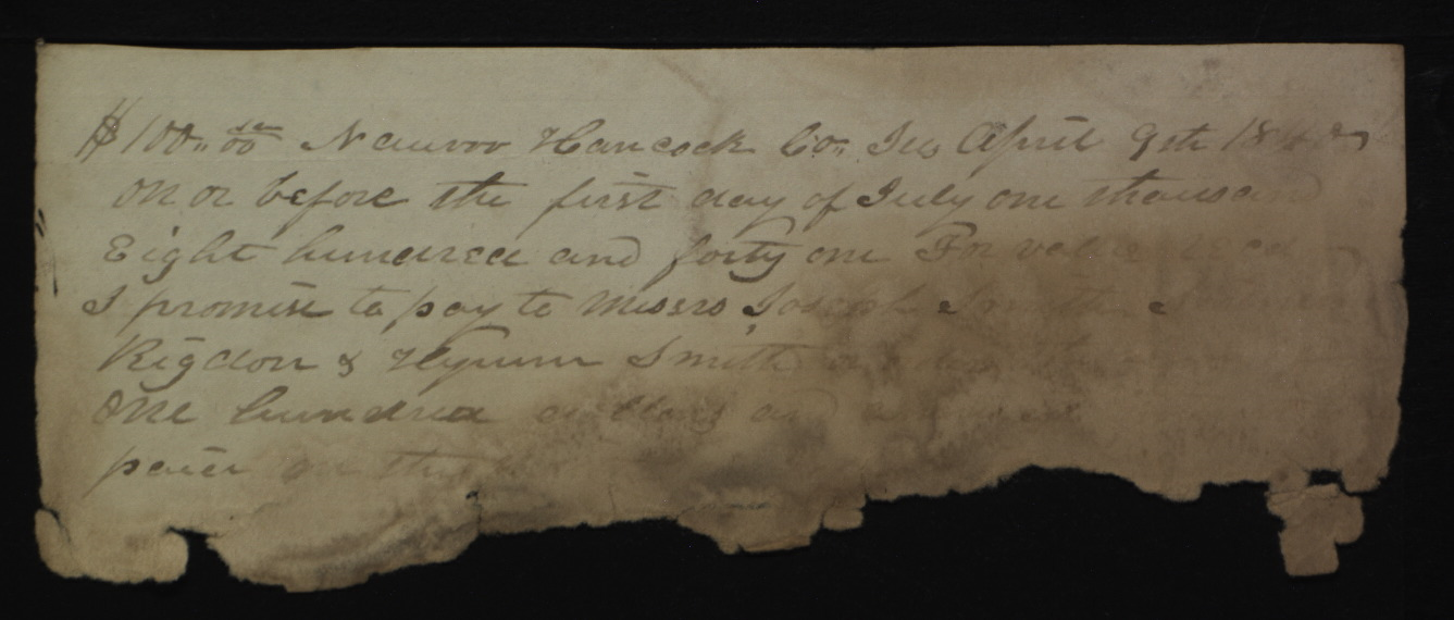 On or before the first day of July one thousand Eight hundred and forty one For value recd I promise to pay to Messrs Joseph Smith [Jr] & or order the [sum of] One hundred dollars and interest [the interest to be] paid on the [first day of July] [p. [1]]