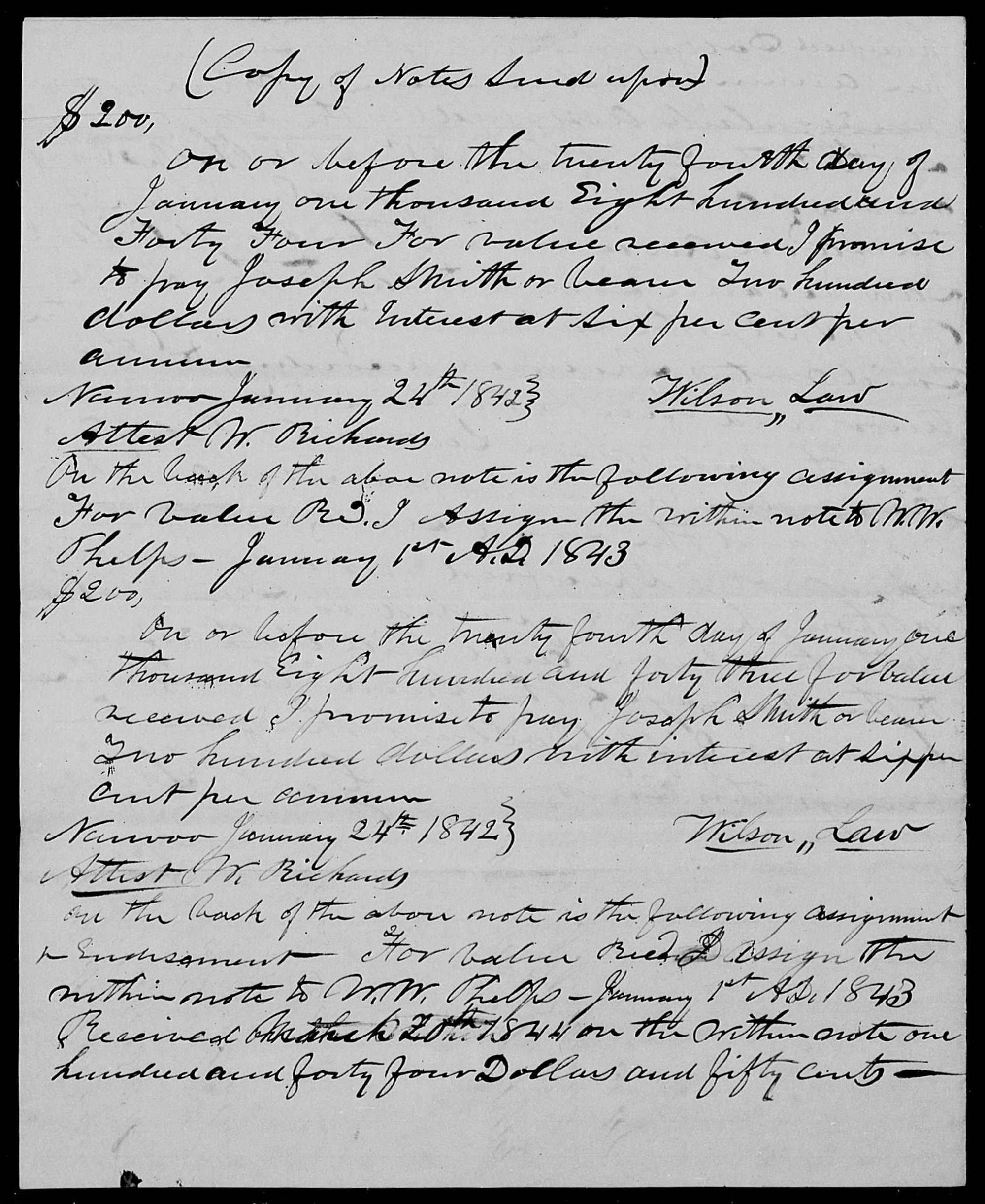 - Promissory Note from Wilson Law, 24 January 1842–A, Copy