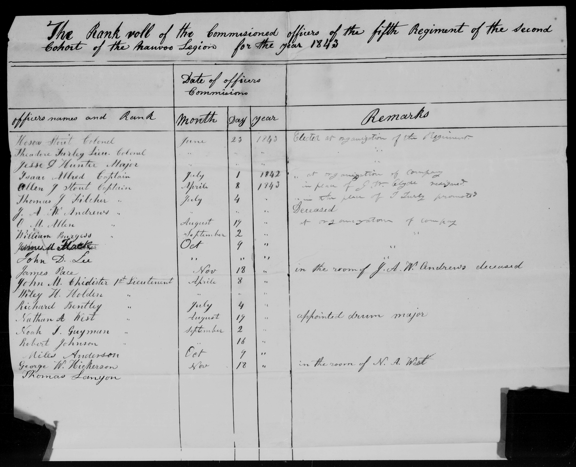 Rank Roll from Fifth Regiment, Second Cohort, circa 1843