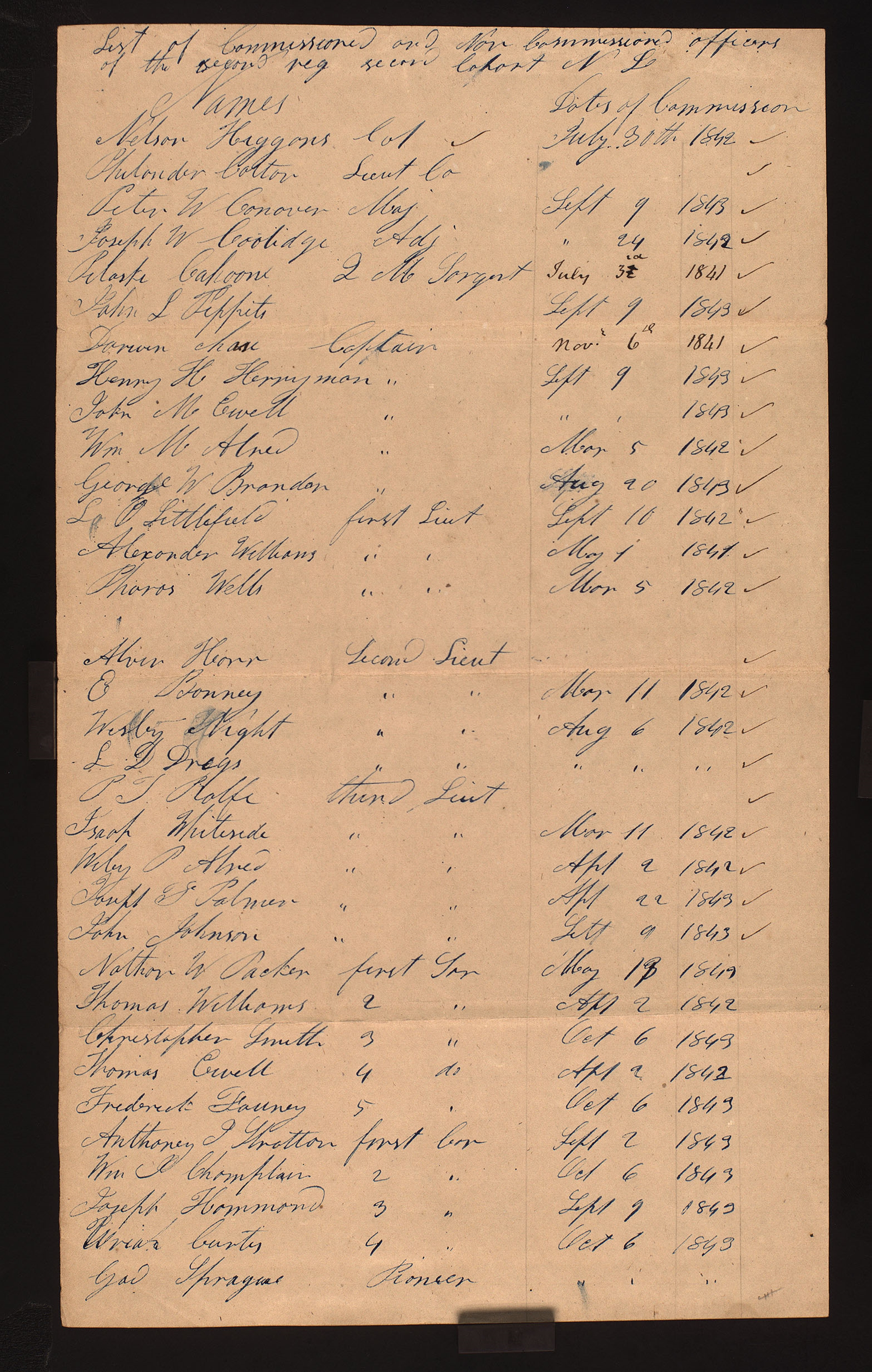 List of Commissioned and Non Commissioned officers of the second reg second Cohort