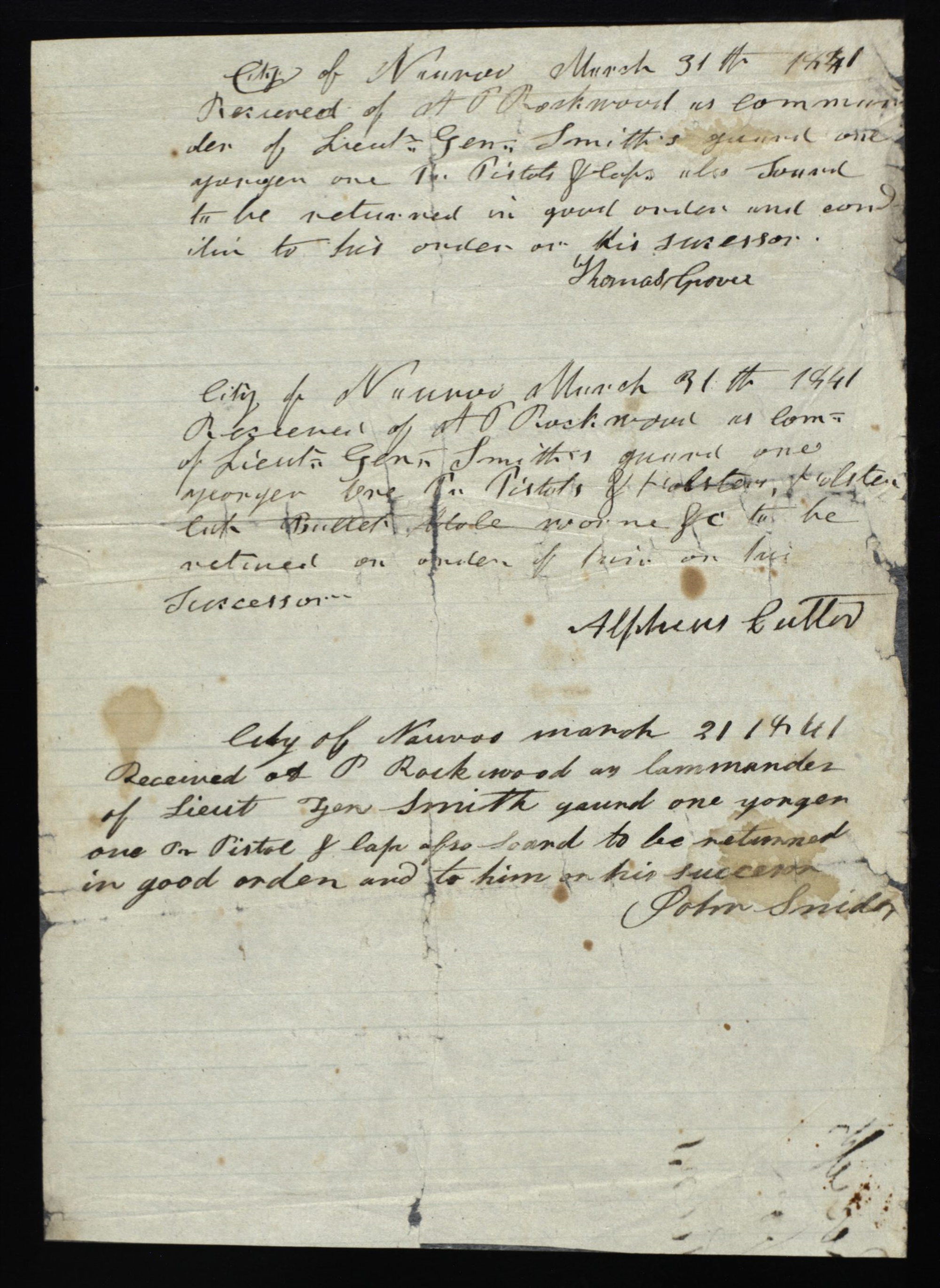 Receipt, Alpheus Cutler to Albert P. Rockwood, 31 March 1841