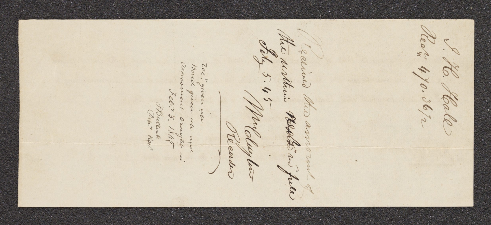 Received the amount of the within Wards <rect> in full Feby 5. 45
