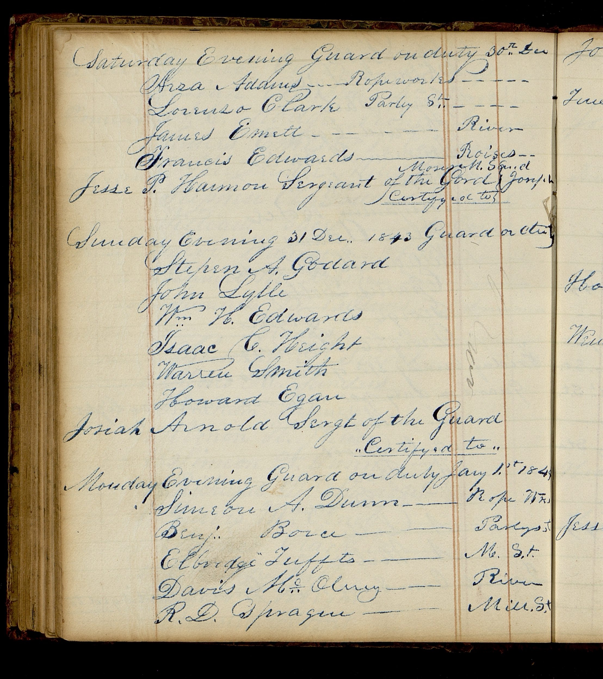 Sunday Evening 31 Dec. 1843 Guard on duty