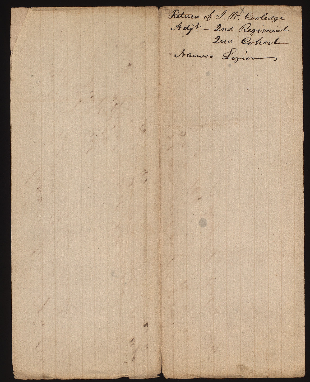 , Return from Second Regiment, Second Cohort, , Hancock Co., IL, 27 June 1844; handwriting of ; docket in unidentified handwriting; one page; Nauvoo Legion Records, CHL.