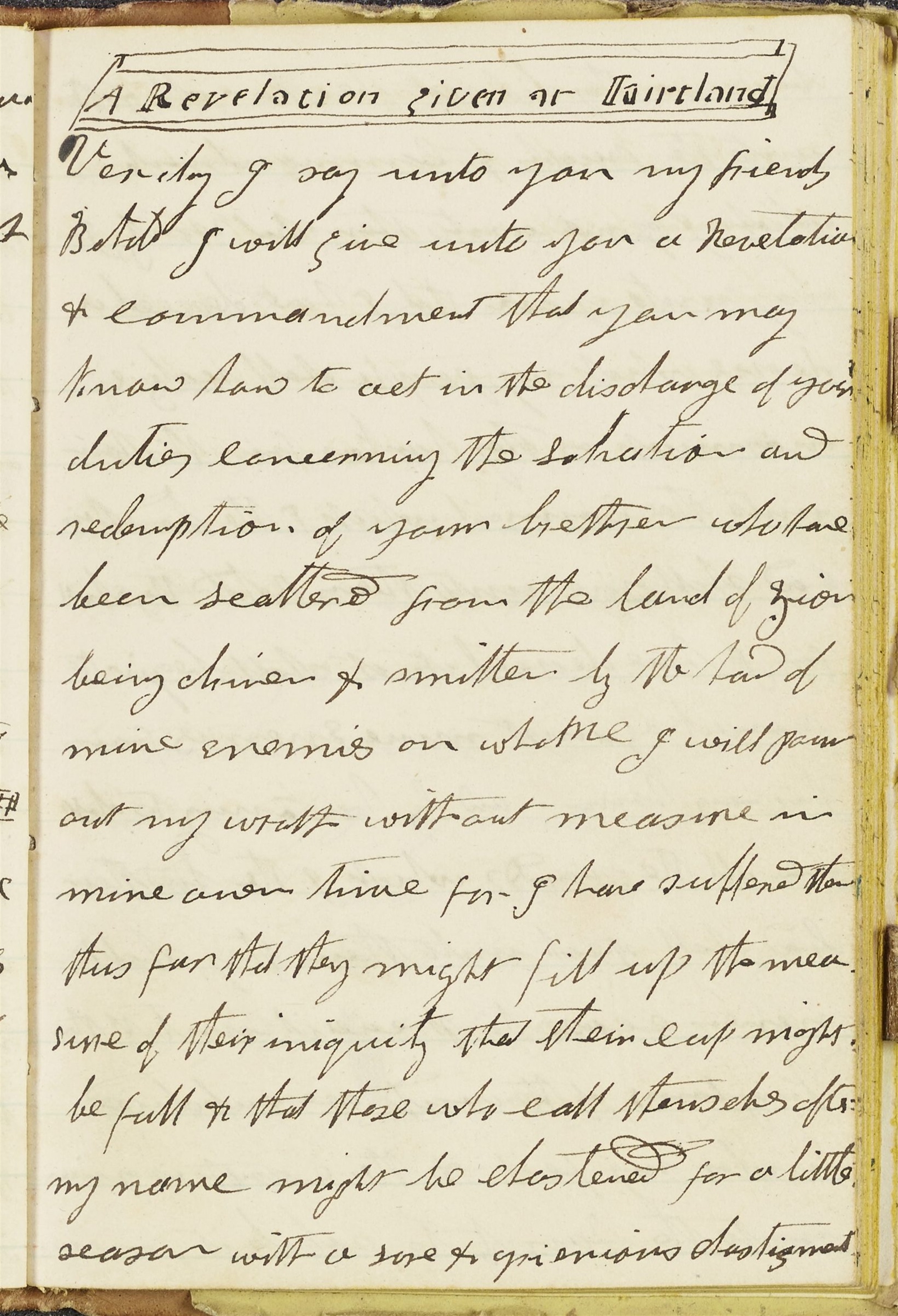 Revelation, , Geauga Co., OH, 24 Feb. 1834. Version copied [between 2 July and 8 Aug. 1839] in Woodruff, Book of Revelations, [49]–[59]; handwriting of ; CHL.
