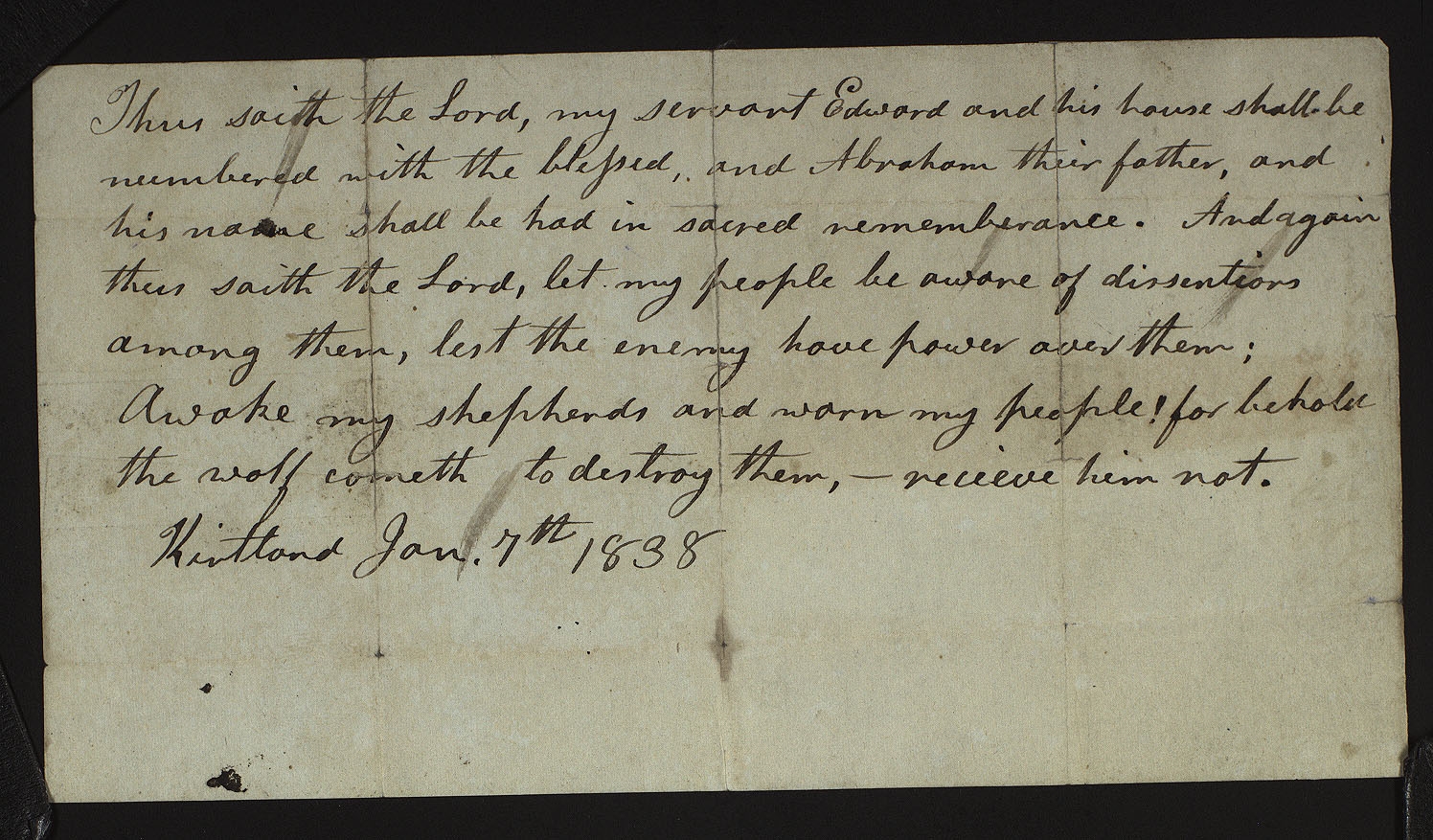 JS, Revelation, [Kirtland Township, Geauga Co., OH], to , 7 Jan. 1838. Version copied [between 1838 and 1840]; handwriting of ; one page; Revelations Collection, CHL.