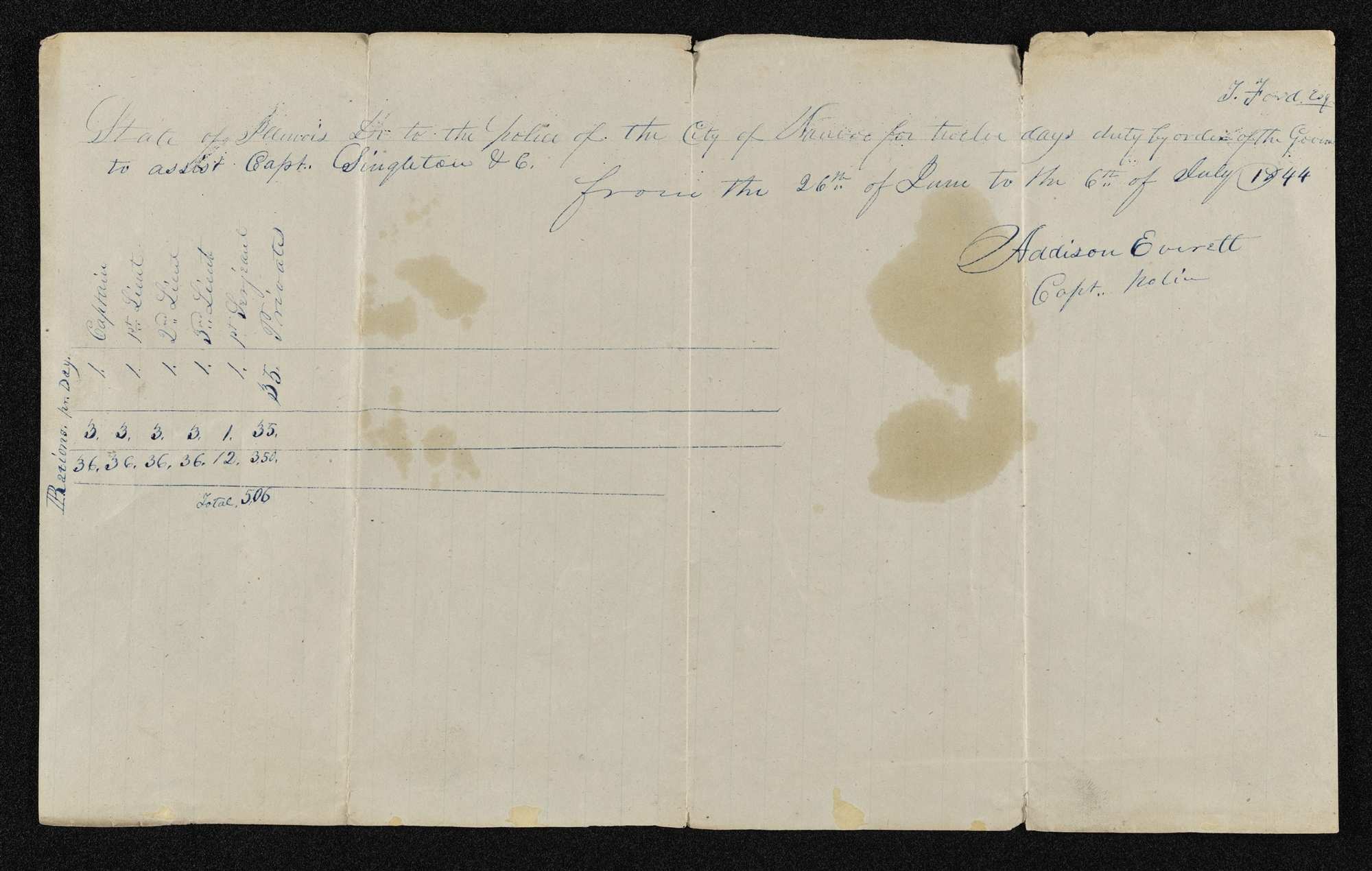 Statement of Account, Nauvoo City Police to State of Illinois, circa 6 July 1844