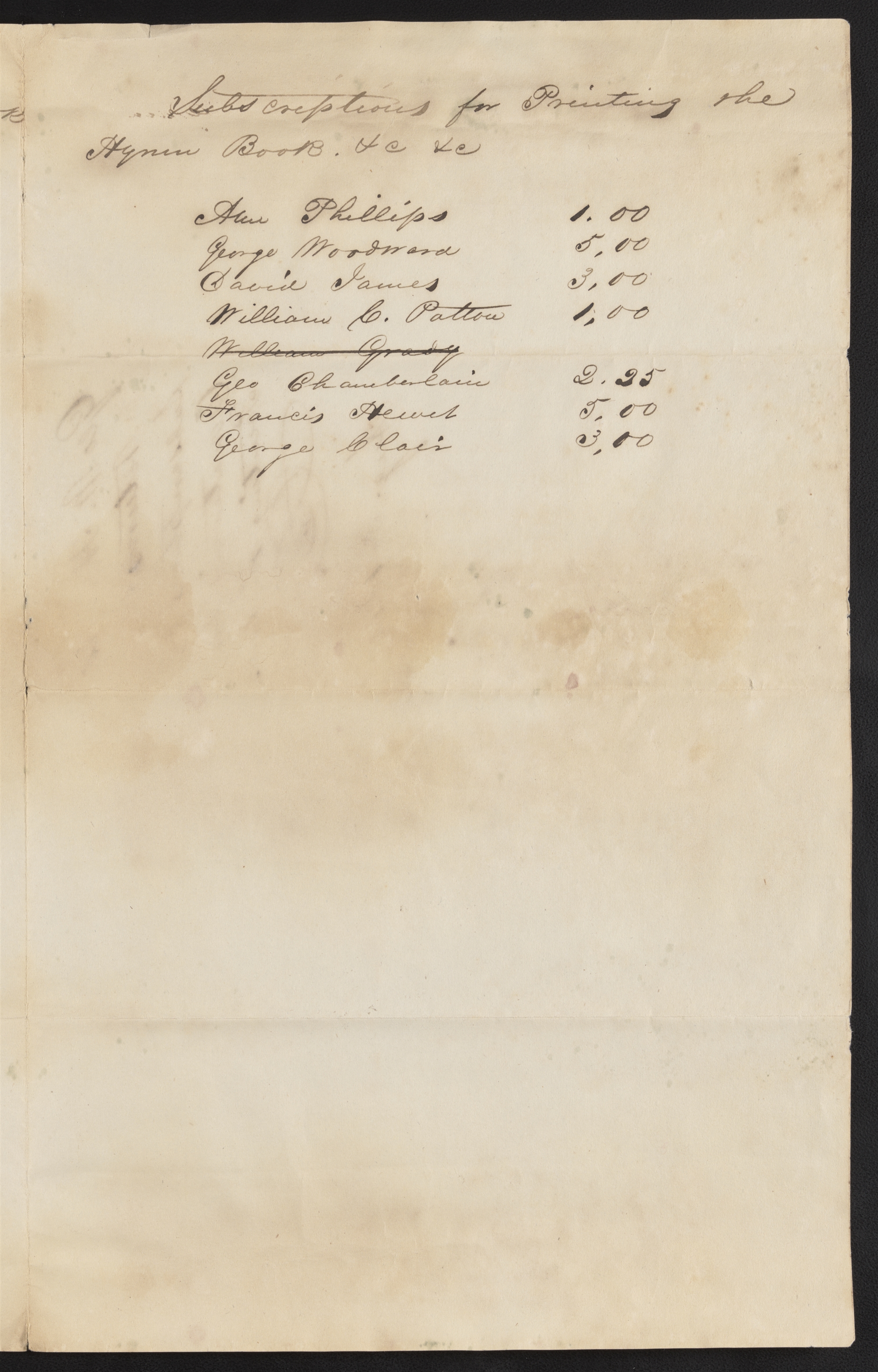 Subscriptions for Printing the Hymn Books. &c &c