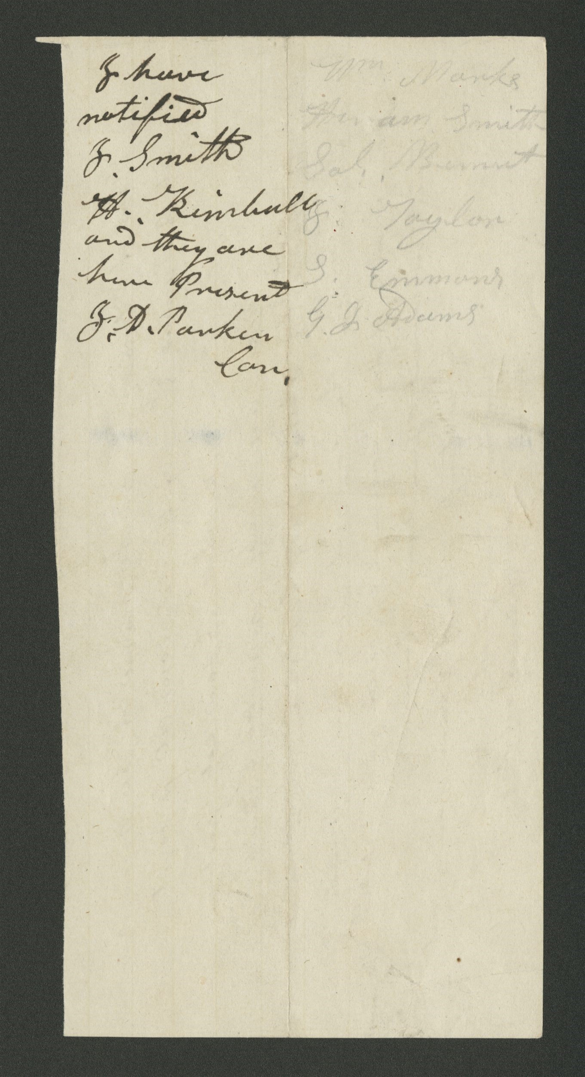 , Summons, to Nauvoo City Marshal [], for JS, , , , , , , and , , Hancock Co., IL, 14 Oct. 1843; handwriting of ; notation in handwriting of ; two pages; Nauvoo, IL, Records, 1841–1845, CHL.