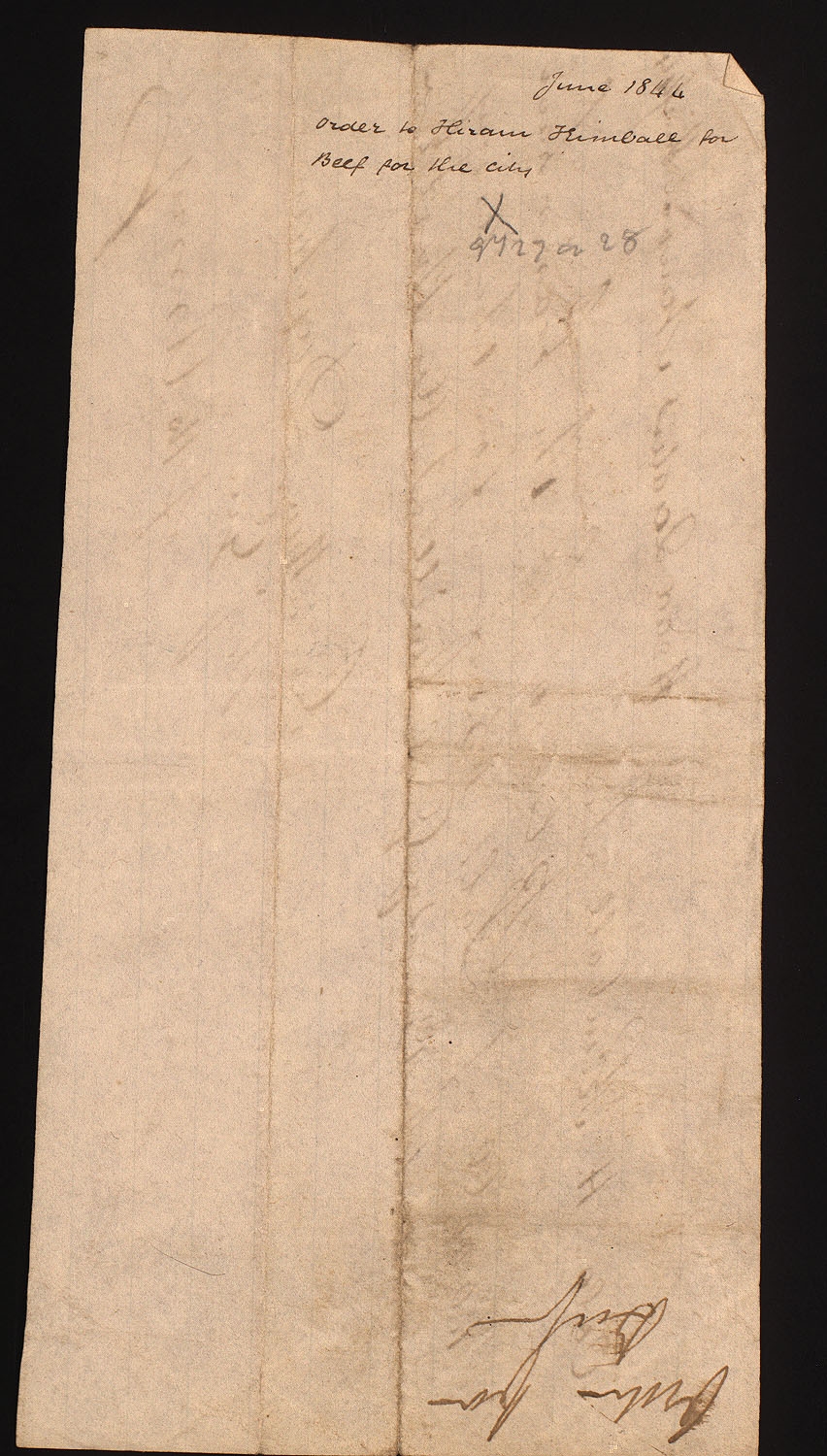 Supply Order, Jonathan Dunham to Hiram Kimball, June 1844