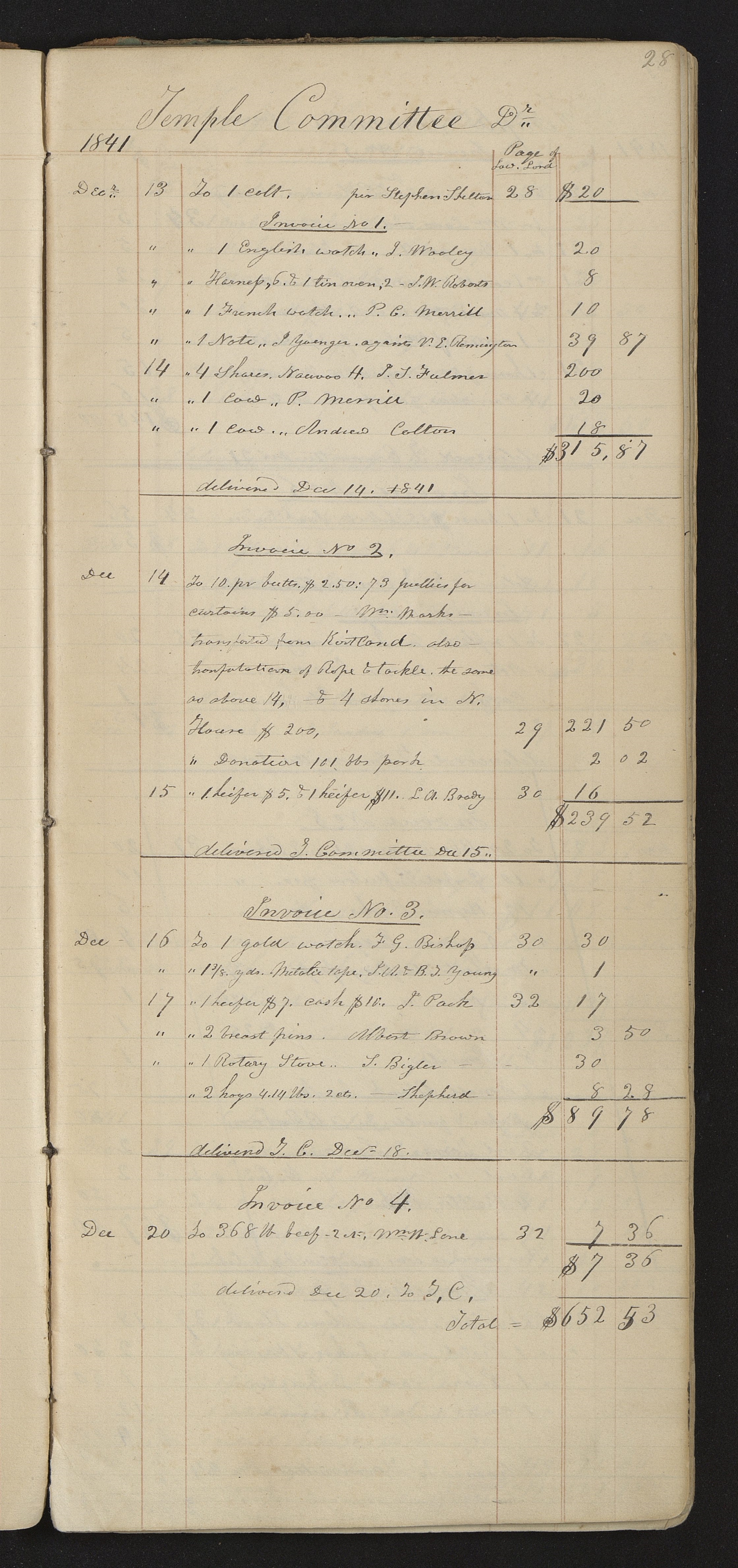 See, for example, Invoice from A. I. Chittenden, circa 2 November 1841.