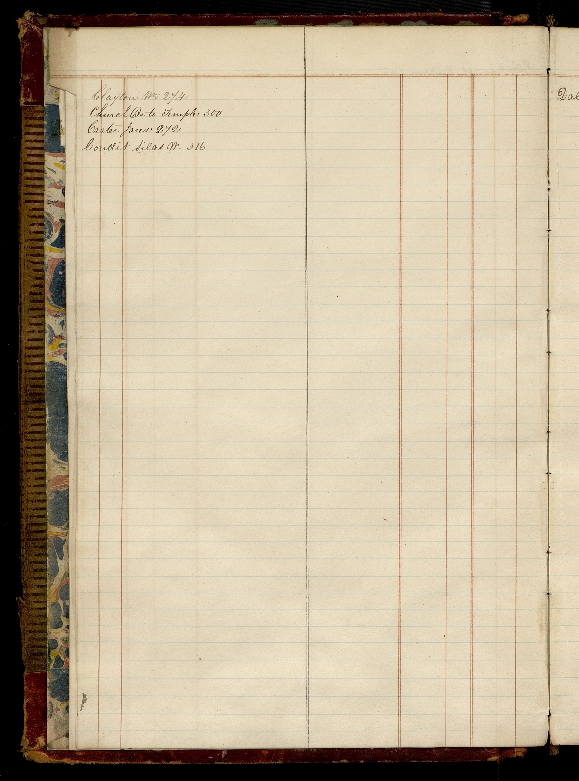 This likely led to the inscription of “Temple Committee Book A” on the spine of the volume. Some have mistaken this as an indication that this record book belonged to the Nauvoo temple committee; however, these are not temple committee records but rather accounts between the trustee-in-trust office and the Nauvoo temple committee.